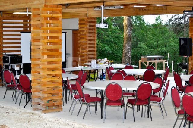 Depuis 2012, le Domaine des Bories met à votre disposition une halle polyvalente de 130 m² pouvant accueillir jusqu'à 110 personnes assises (70 places intérieures, 40 en terrasses). Halle Parfaitement intégrée à l'environnement du Domaine, la halle est l'endroit idéal pour organiser mariages, séminaires, ou autres cousinades. La polyvalence du lieu luipermet en effet de servir à la fois d'espace de réunion (micro et vidéo-projecteur, connexion internet, sont intégrés au lieu), de fête (installations sonore et lumineuse haut de gamme) ou bien encore d'espace dinatoire (un espace cuisine est ainsi mis à la disposition des traiteurs). L'architecture, voulue en parfaite adéquation avec l'esprit du Domaine, est simple et épurée : Grâce à ses panneaux coulissants, l'espace principal est ouvert sur la nature abondante des Bories. La toiture, transparente, laisse la lumière pénétrer les lieux. Quant à l'ensemble, il est entièrement bâtit en bois, sous la houlette de l'Architecte du Domaine Jean-Pierre laubal. L'aspect matériel du lieu n'a pas été délaissé dans la mesure où, qu'il s'agisse de la cuisine, de la partie « dancing », ou bien du matériel prévu pour les séminaires, l'ensemble des installations de la salle a été réalisé par des professionnels, avec pour unique objectif votre confort ainsi que votre satisfaction. Bien évidemment, l'hébergement peut être assuré sur le Domaine grâce à nos gites classés 4**** et 5***** (catégorie des meublés de tourisme) au niveau préfectoral. Nos équipes peuvent en outre se charger de vous mettre en relation avec les traiteurs les plus réputés de cette région gastronomique qu'est la Dordogne, ainsi qu'avec de nombreux animateurs de soirées. N'hésitez plus et contactez nous pour tout devis concernant une utilisation privée de la salle ! restauration - Liste de traiteurs référencés sur demande - Matériel de cuisine mis à la disposition des traiteurs. - Tables et chaises installées par nos soins. HÉbergement - Gites classés 4**** et 5***** à la disposition des utilisateurs de la salle (soumis à réservation). autres services - Organisation de soirées à thèmes, d'événements, et de diverses animations par des professionnels affiliés au Domaine des Bories. Équipement (sur réservation) : - Tables et chaises à disposition sur site - Office traiteur avec réfrigérateur/cave à vin, congélateur, double bac de plonge, et prises de forces intérieures et extérieures - Parking privé - Ecran géant - Vidéoprojecteur - Materiel audio/vidéo pour l'animation de vos soirées.