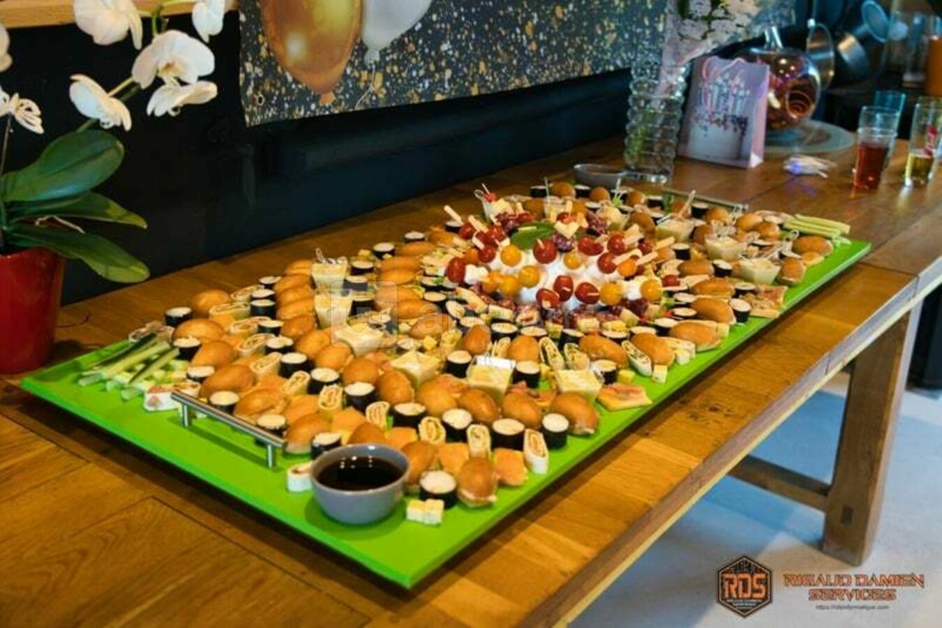 Buffet de mignardises salées :Une sélection raffinée pour éveiller vos papilles (sushis, navettes, wraps, etc.).