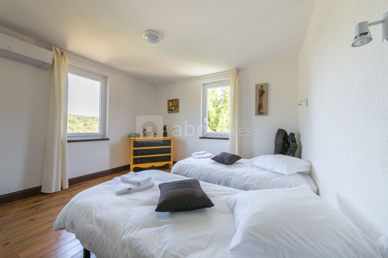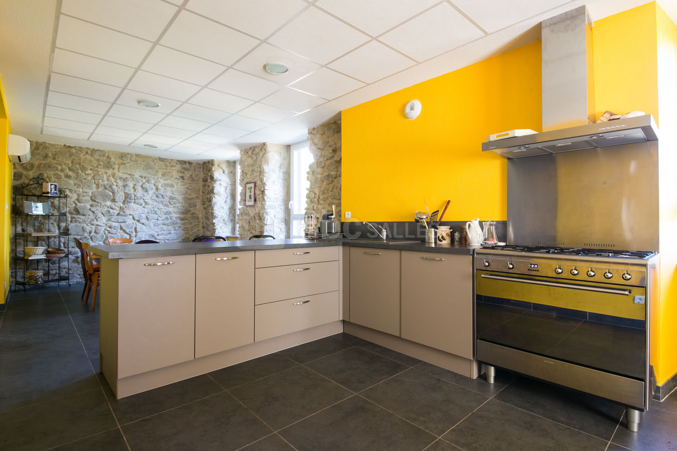 Le gite dispose au rez de chaussez d'une grande cuisine toute équipée et d'un salon-salle à manger. Il y a 9 chambres avec salles de bain privées repartis sur 3 niveaux et une grand salle de jeux.