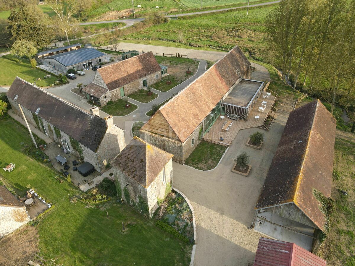 Cette ancienne Batisse en pierres apparentes a été rénové,tout en conservant la charpente bois traditionnelle et l'hauteur sous plafond afin de laisser libre a votre imagination pour la decoration 'est grand baie vitrée seront parfaites pour apporter de la lumiere. Un mur en pierre interieur a été conserver avec lumieres au sol. Elle dispose d'une annexe office traiteur et sanitaire de 93 m² en colombage.