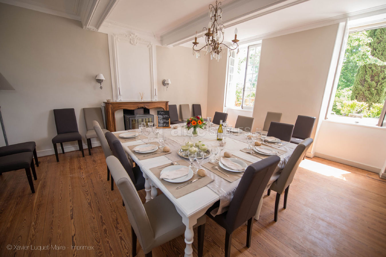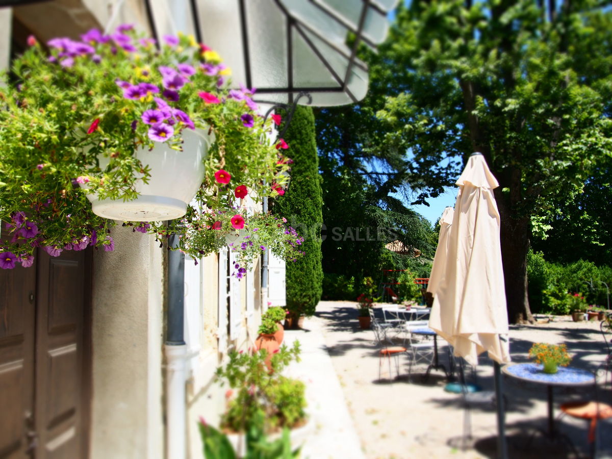 A l’extérieur une grande terrasse ombragée par des arbres centenaires pourra accueillir vos convives pour un verre d’honneur, un apéritif... et le tout surplombant un grand parc verdoyant.