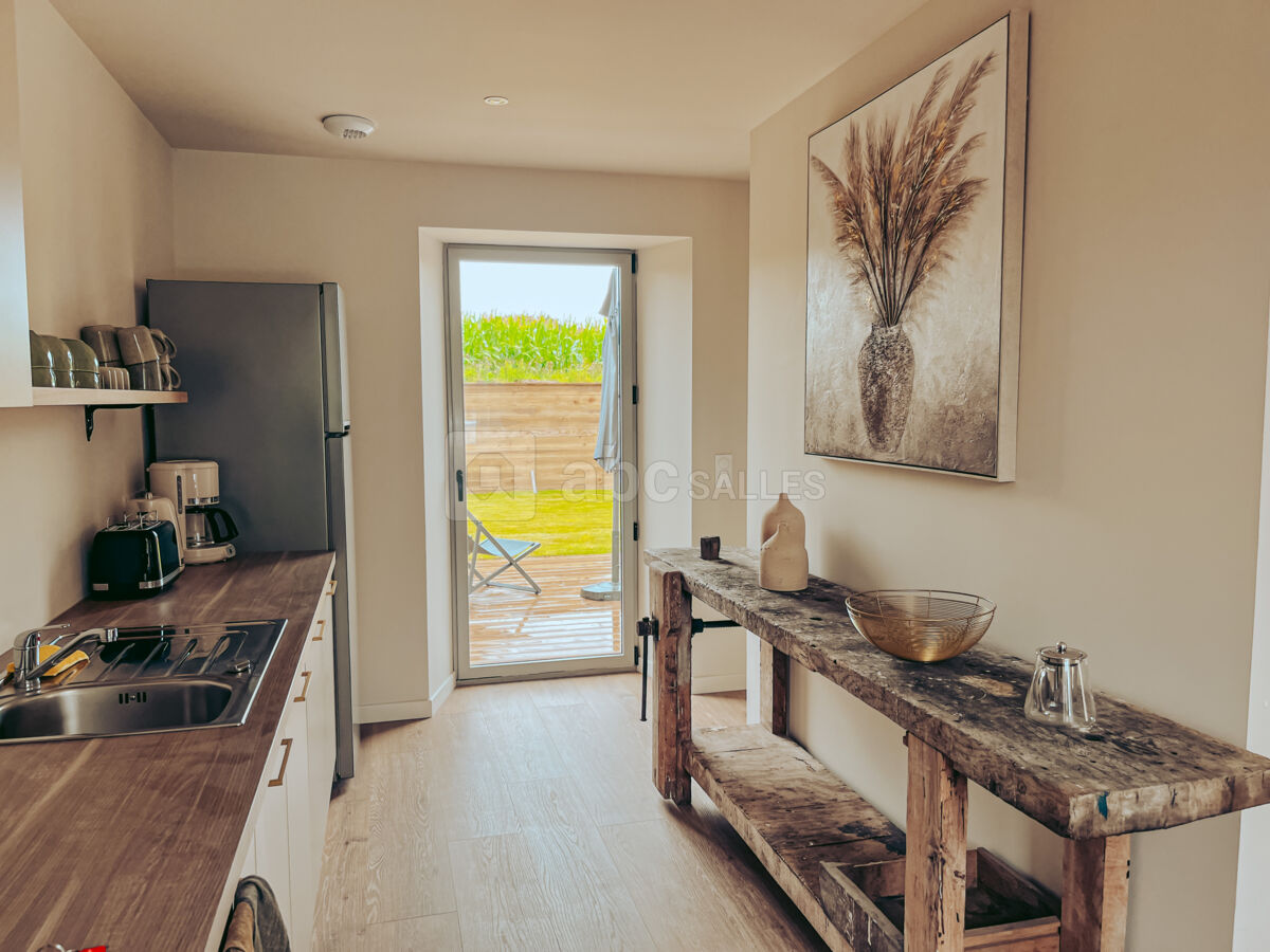 Chaque maison dispose de sa propre cuisine, coin salon et salle à manger ainsi que d'un jardin privé (sauf la Tiny House) avec tables et chaises d'extérieurs pour que vous puissiez déjeuner dehors si le temps le permet.