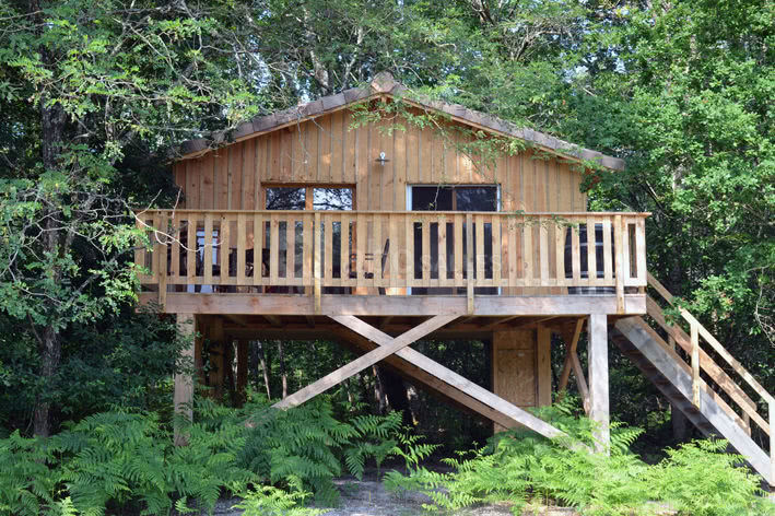 Hébergements insolites en cabanes sur pilotis dans les arbres, confortables et accessibles à tous, pour 24 personnes, ainsi qu'un gîte pour 12 personnes ! Capacité de couchage de 36 personnes.