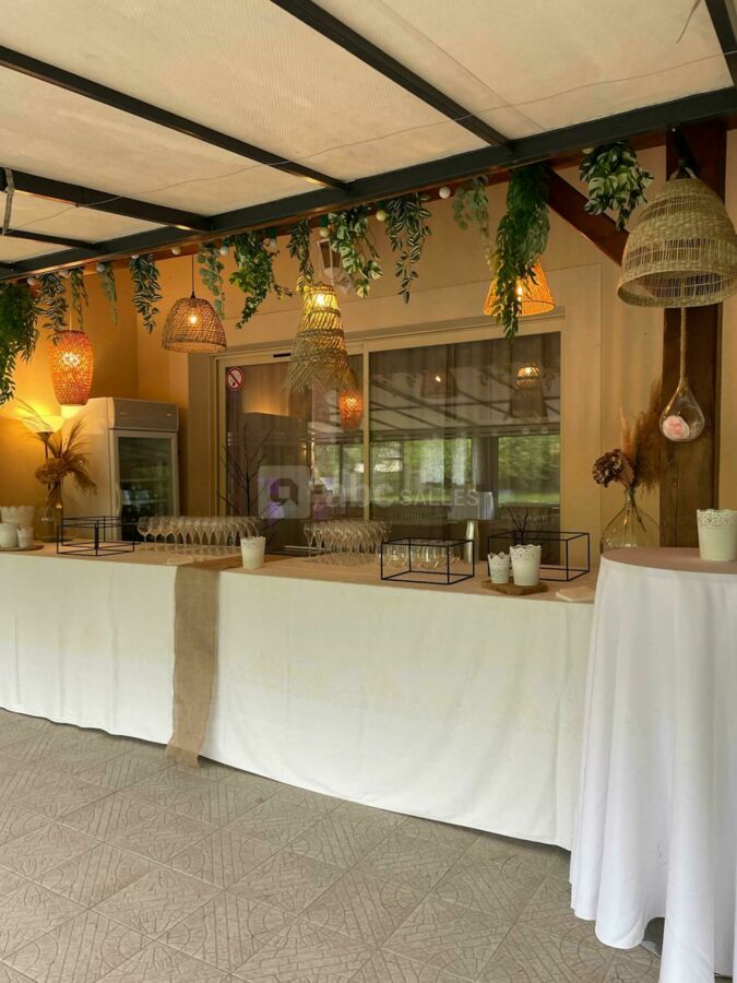 Avec une capacité d’accueil allant jusqu’à 100 personnes assises ou 140 personnes en cocktail, notre salle est entièrement équipée avec des tables rondes et rectangulaires, des manges-debout et des chaises en simili cuir noir, garantissant confort et convivialité. La salle et la véranda, décorées au goût du jour, sont facilement aménageables pour correspondre à tous vos thèmes de réception et à vos envies. Tous nos espaces sont accessibles aux personnes à mobilité réduite, assurant ainsi une expérience agréable pour chacun de vos invités.
