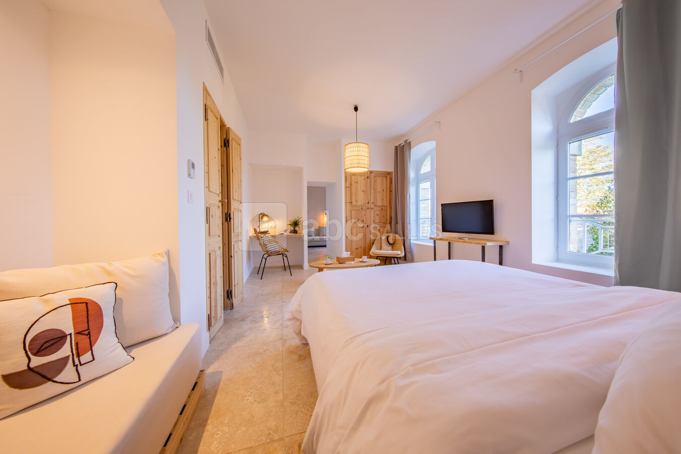 -d'un Hôtel*** "le Moulin de la Roque" avec 24 chambres, piscine, court de tennis et parking privé,