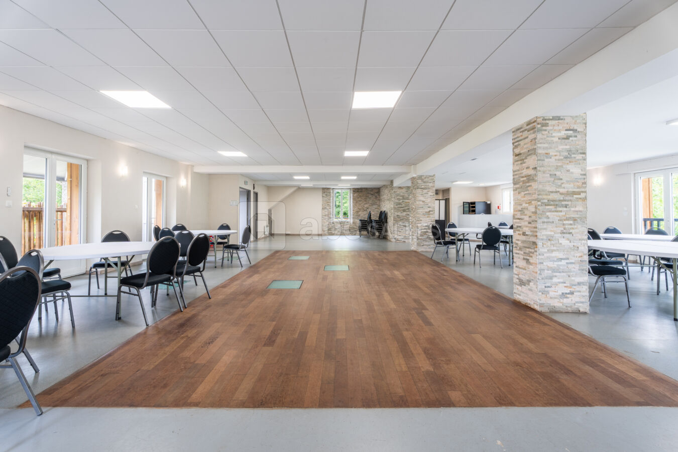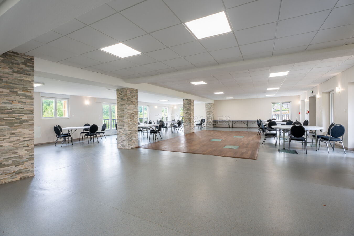 - La salle de réception, très lumineuse, est adaptée aux personnes à mobilité réduite (présence d'un ascenseur). Elle a une capacité d’accueil jusqu’à 110 personnes assises. Elle dispose également d'une piste de danse.