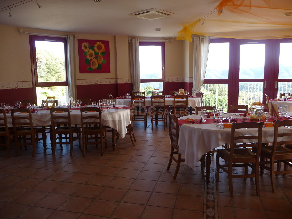 Nous mettons a votre disposition une salle de 200 m² rectangulaire très lumineuse grâce a une large baie vitrée et une autre salle de 150 m² arrondie avec vue imprenable sur la vallée.