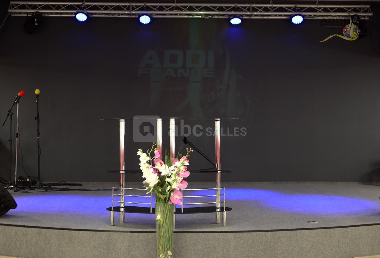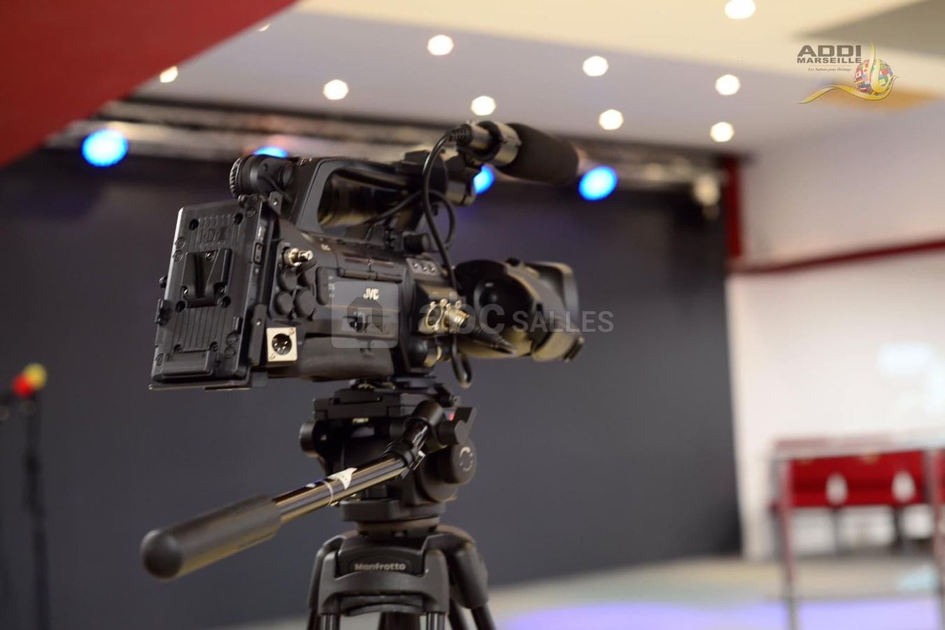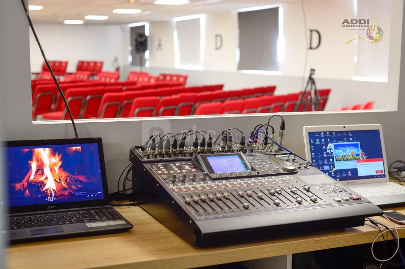 Nous avons à disposition du matériel pour la sonorisation, tables son et micros, pour filmer en live 3 caméras professionnelles et appareils photos, des toilettes aux normes handicapés et des toilettes séparés hommes femmes, 2 bureaux, un ascenseur, une cuisine et des places de parkings.