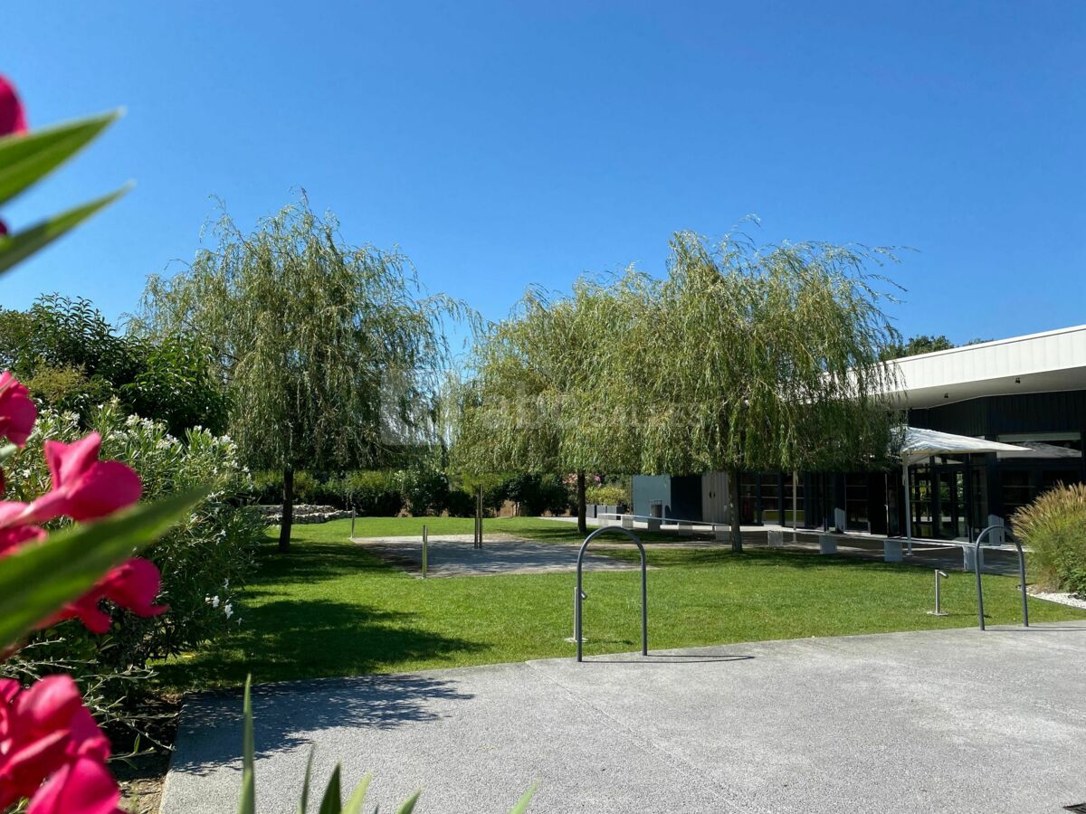 Sa large terrasse couverte prolongée par un jardin invitant à la détente vous permettra de prévoir apéritifs ou activités extérieures en toute sérénité.