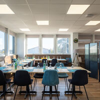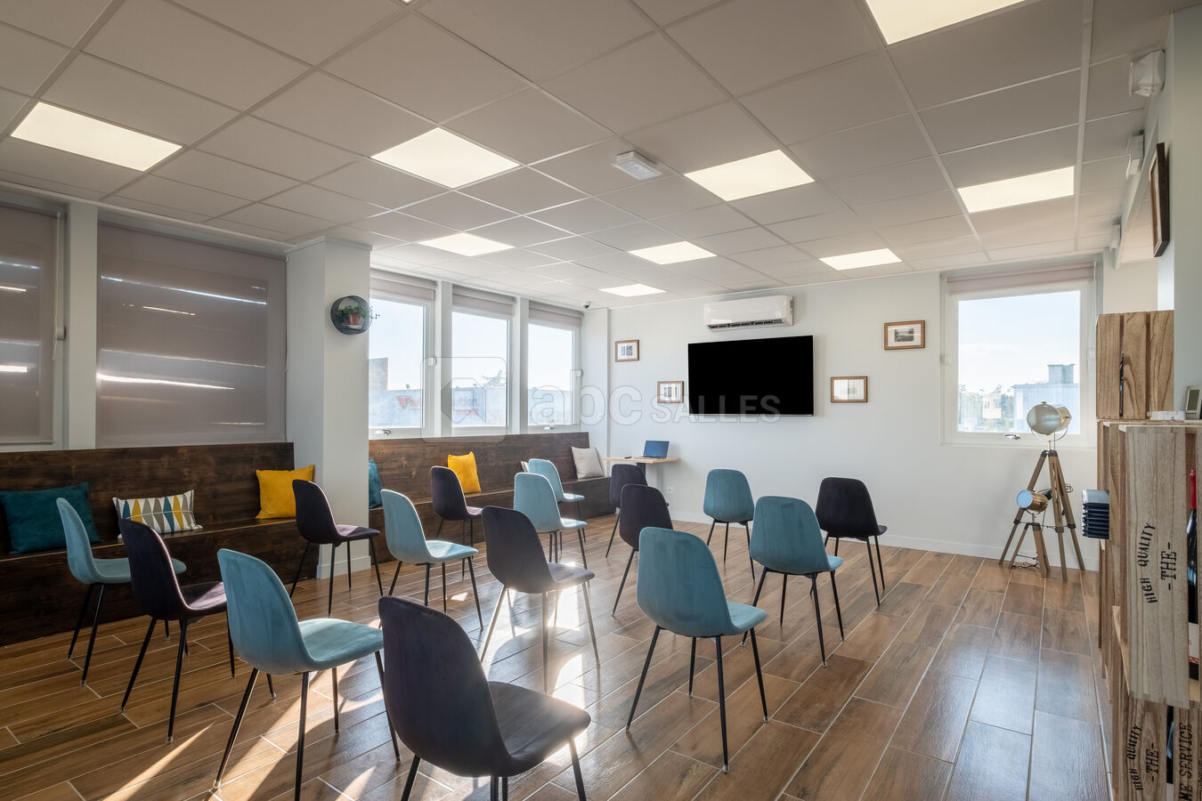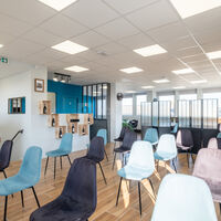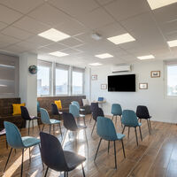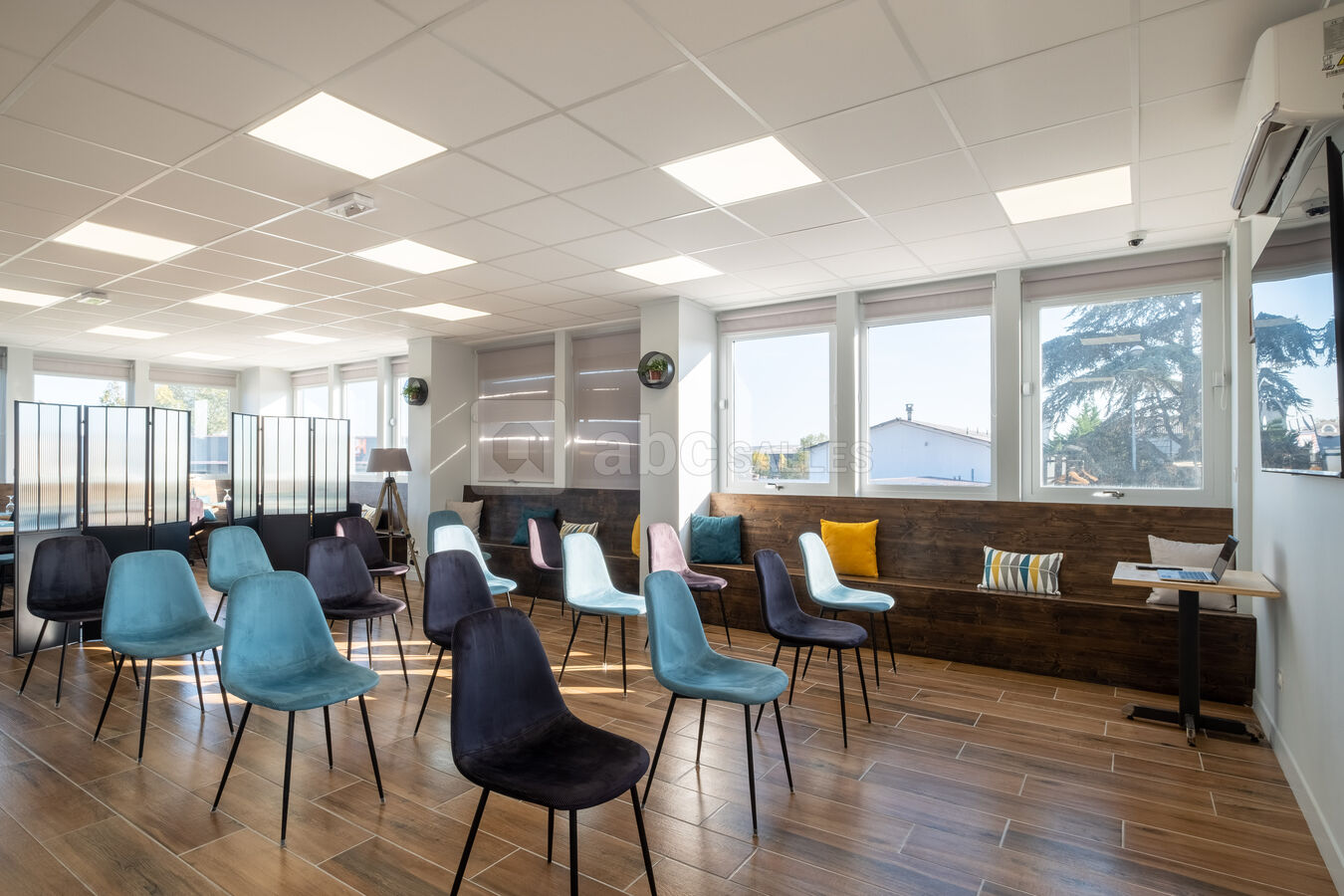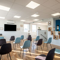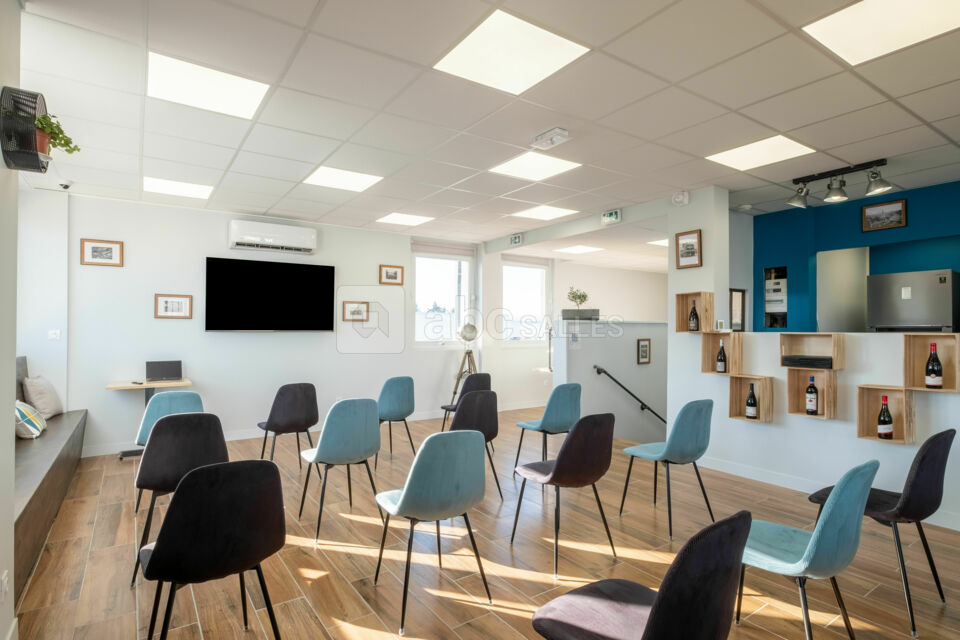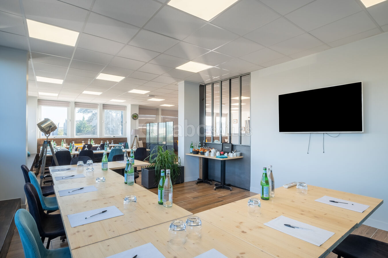 Nous mettons à votre disposition à l'étage un espace de réunion d'une vingtaine de personnes, équipé d'un écran avec liaison ordinateur. Plus de douze? Il est aussi possible de privatiser entièrement l'étage jusqu'à cinquante personnes. Aux beaux jours notre terrasse peut accueillir quatre-vingt personnes.