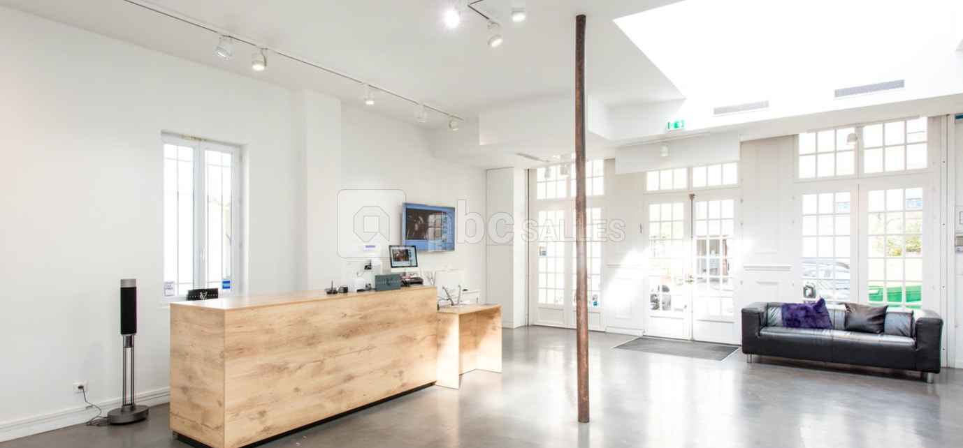 Une verrière, un long comptoir-bar en bois, un sol en béton ciré, un décor minimaliste et industriel entre bois et fer... Cet espace à louer réunit tous les éléments pour plaire au public du Marais. Près du métro Saint-Sébastien-Froissart et de magasins iconiques comme Merci, cet endroit prestigieux s’adapte à l’accueil d’un showroom ou d’événements ambitieux dans l’un des quartiers principaux de la Fashion Week.