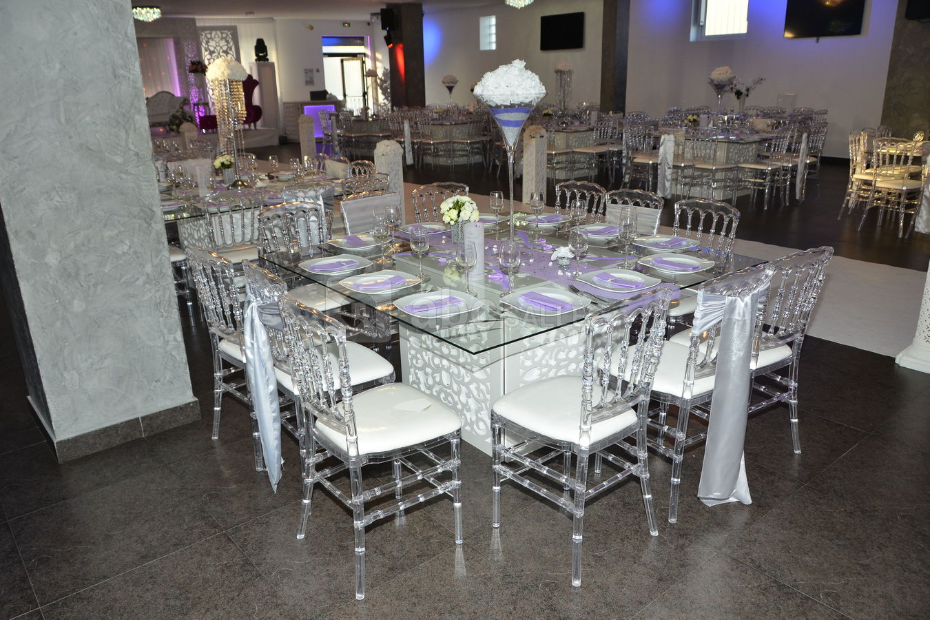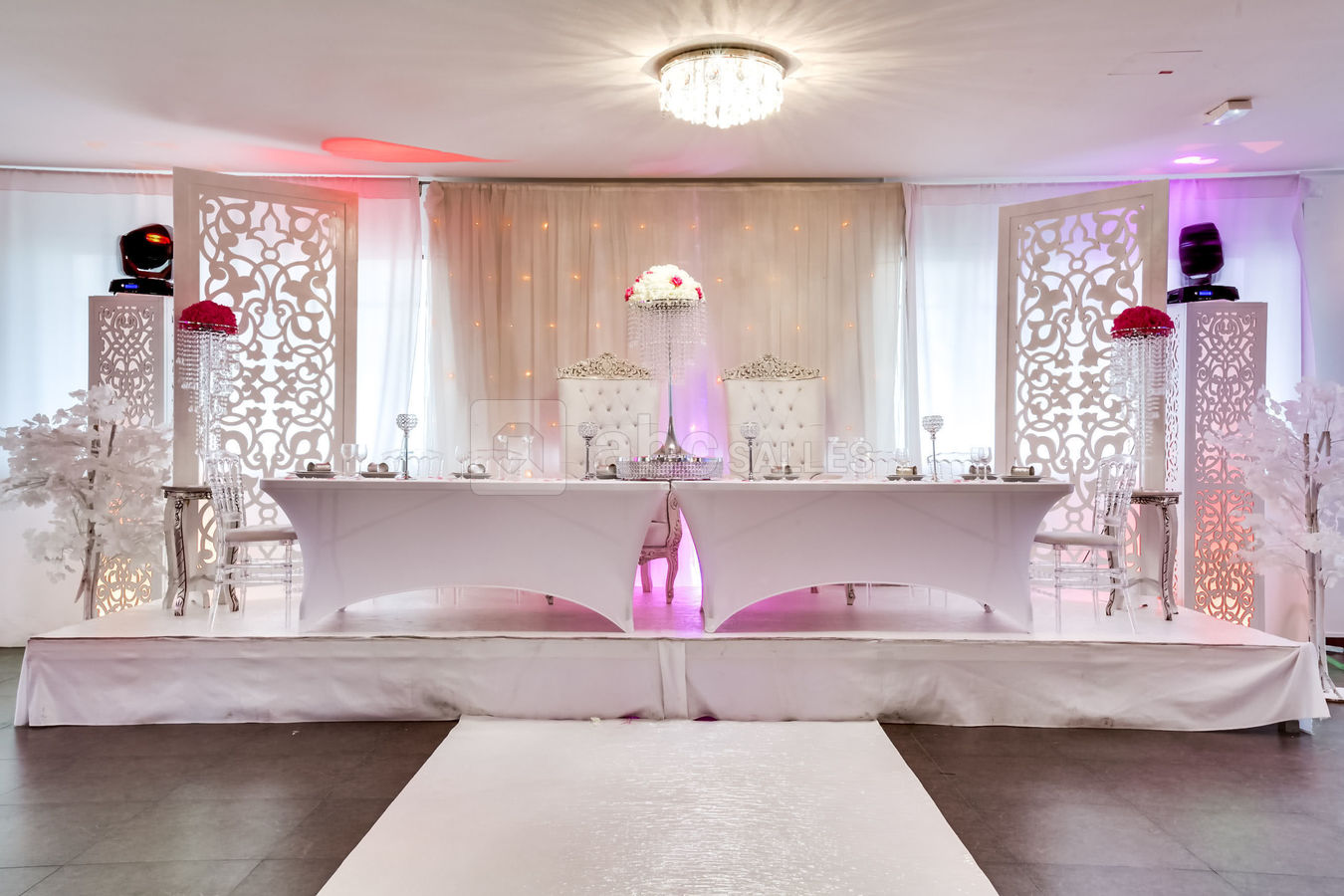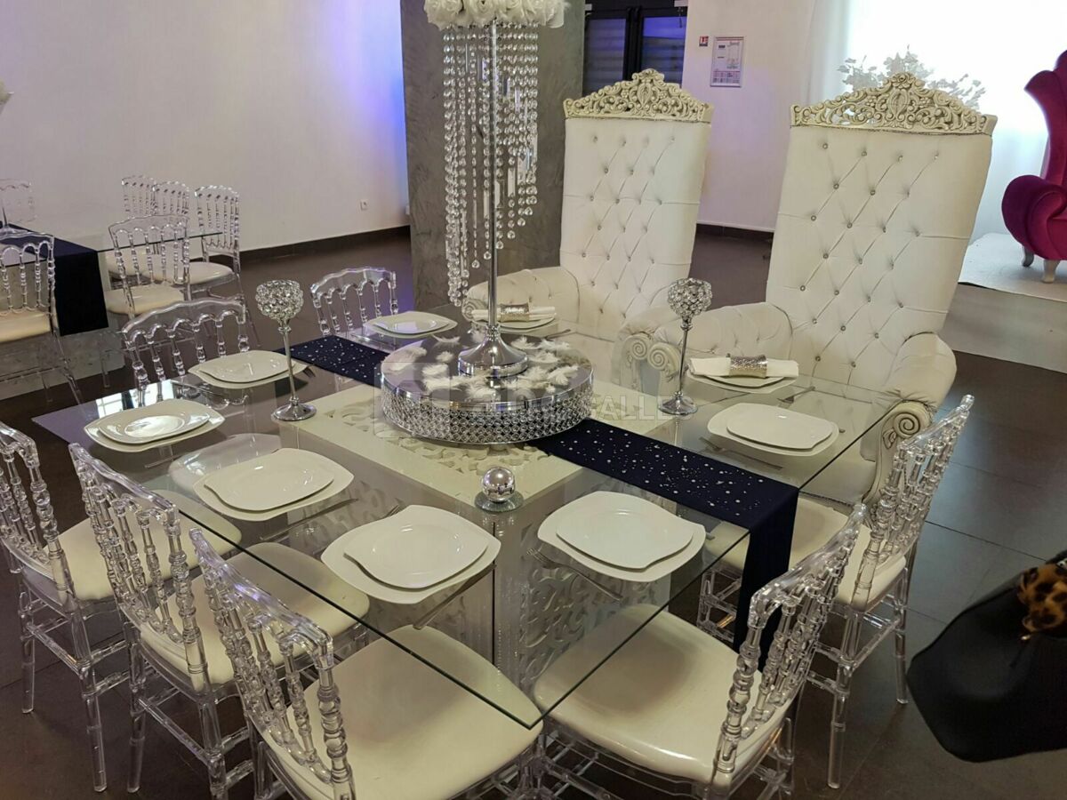 Dans un lieu des plus prestigieux, l’Espace Flora vous propose une décoration élégante et raffinée qui surprendra tous vos convives. Notre décoratrice met à votre disposition une décoration d’exception : tables lumineuses, chaise Napoléon, vase martini, colonne de diamant …