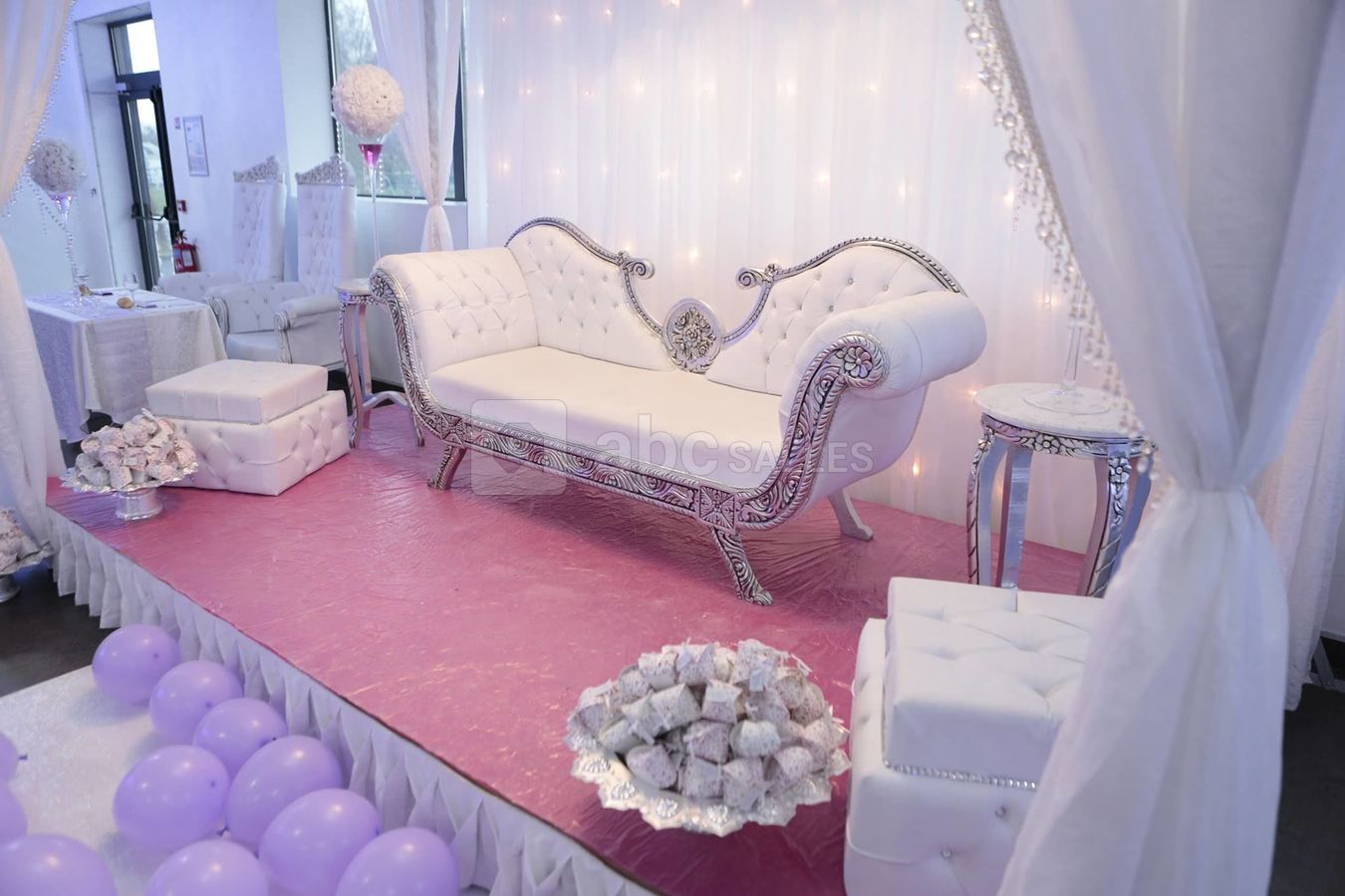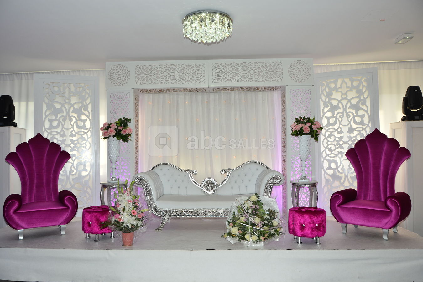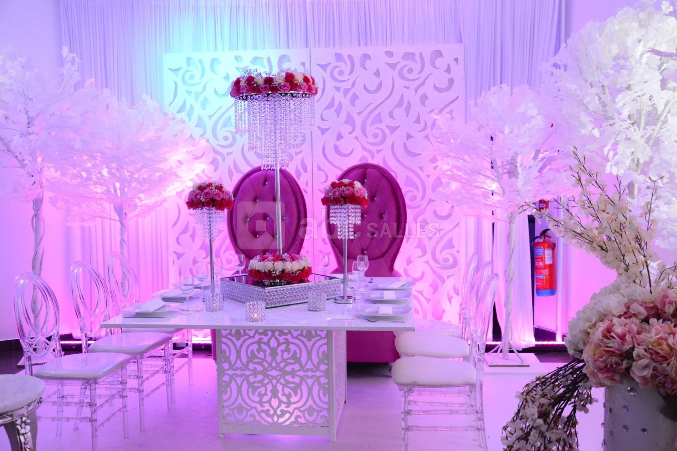 Dans un lieu des plus prestigieux, l’Espace Flora vous propose une décoration élégante et raffinée qui surprendra tous vos convives. Notre décoratrice met à votre disposition une décoration d’exception : tables lumineuses, chaise Napoléon, vase martini, colonne de diamant …