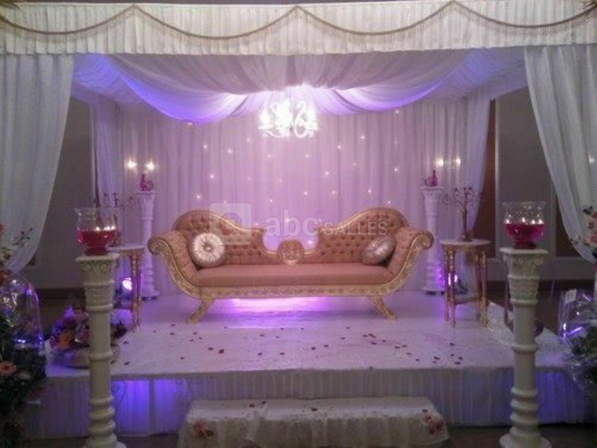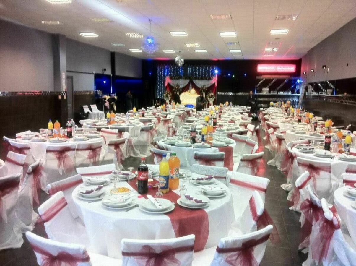 Nos prix comprennent les tables, les chaises, les nappes, les houses de chaises, les couverts, les assiettes, les verres, les casseroles, l'accès à la cuisine et les trônes pour les mariés.