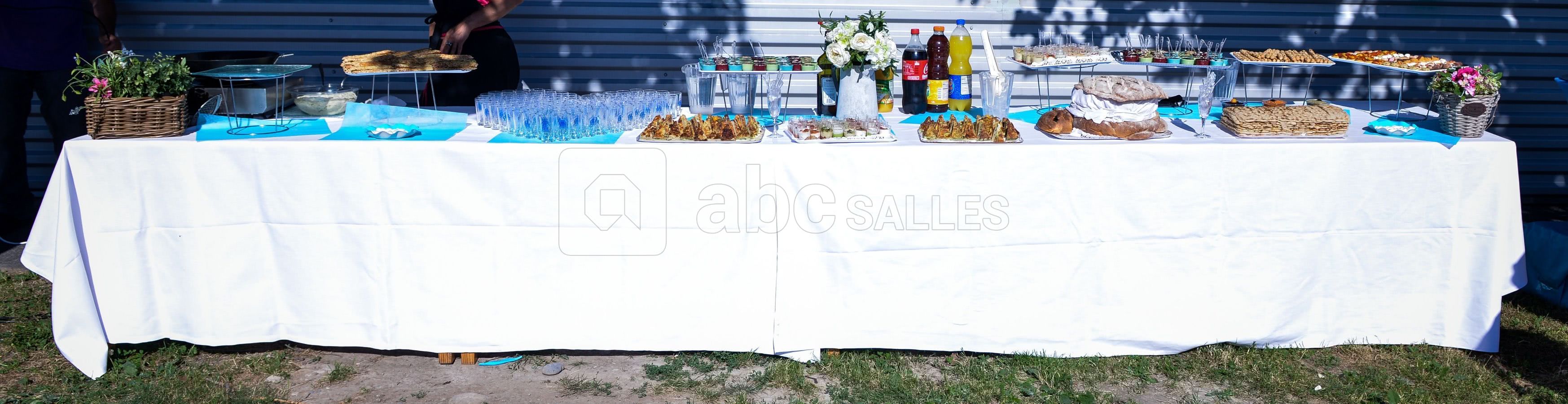 Un parking à disposition et facile d’accès. Du wifi à la demande et gratuit. Des tables et des chaises, des frigos, une machine à glaçons ! Et une salle climatisée si besoin. Nous mettons à disposition vaisselles, nappages, housses de chaises.