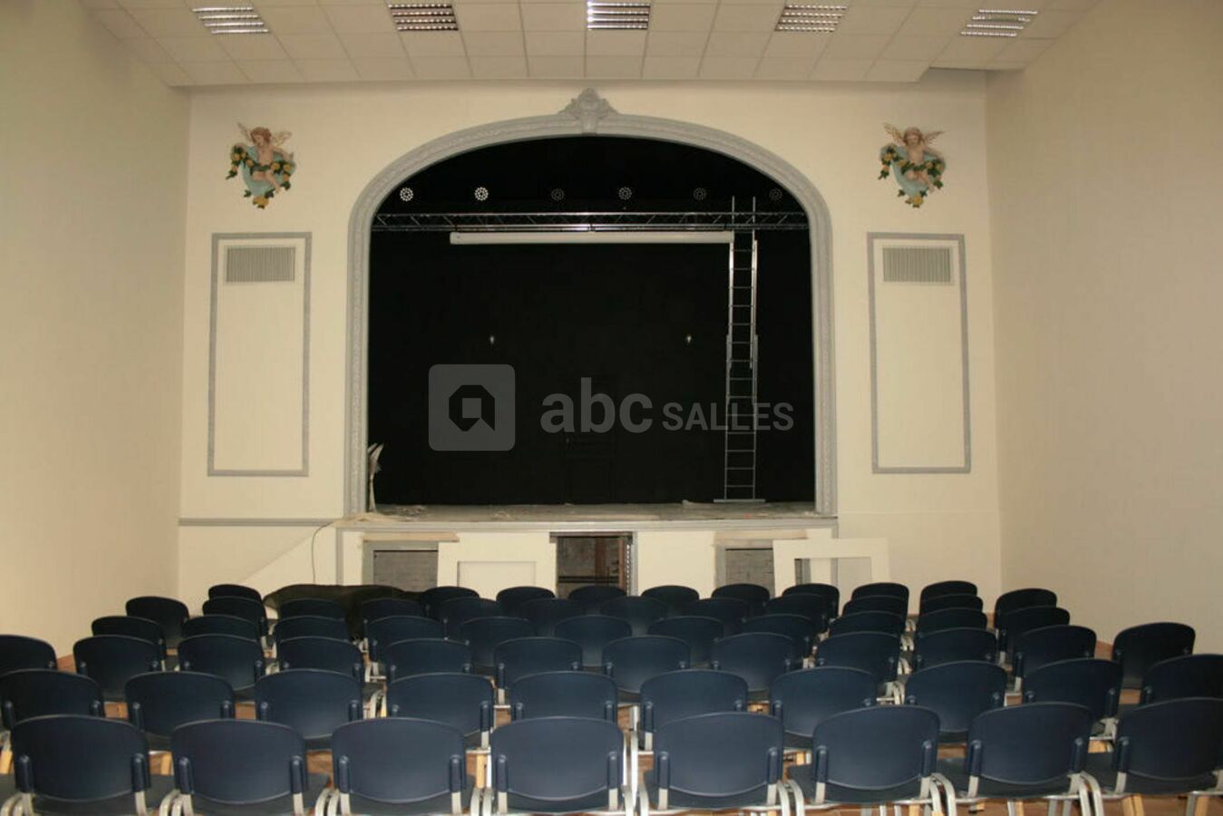 Notre salle s'adapte à tous vos besoins, elle est aménageable par vos soins à volonté. Elle dispose d'une scène traditionnelle avec ses coulisses et loges, de 200 chaises et 36 tables et d'une sonorisation de base. Elle dispose également d'une régie professionnelle son et lumière, d'un vidéo projecteur, d'un écran géant et d'une connexion internet ADSL pour vidéo conférence.