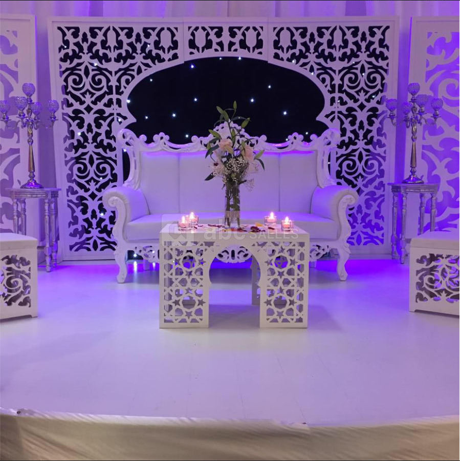 Nous mettons à votre disposition un équipement complet : tables rondes, estrade, chapiteau, bar équipé, cuisine équipée, sanitaires séparés, loge, espace sono, vestiaire, parking privatif sécurisé, climatisation et service de sécurité.