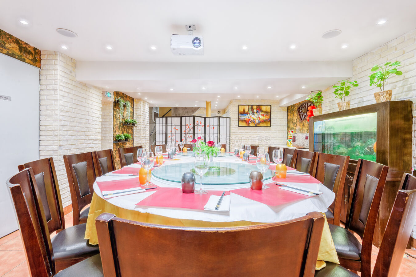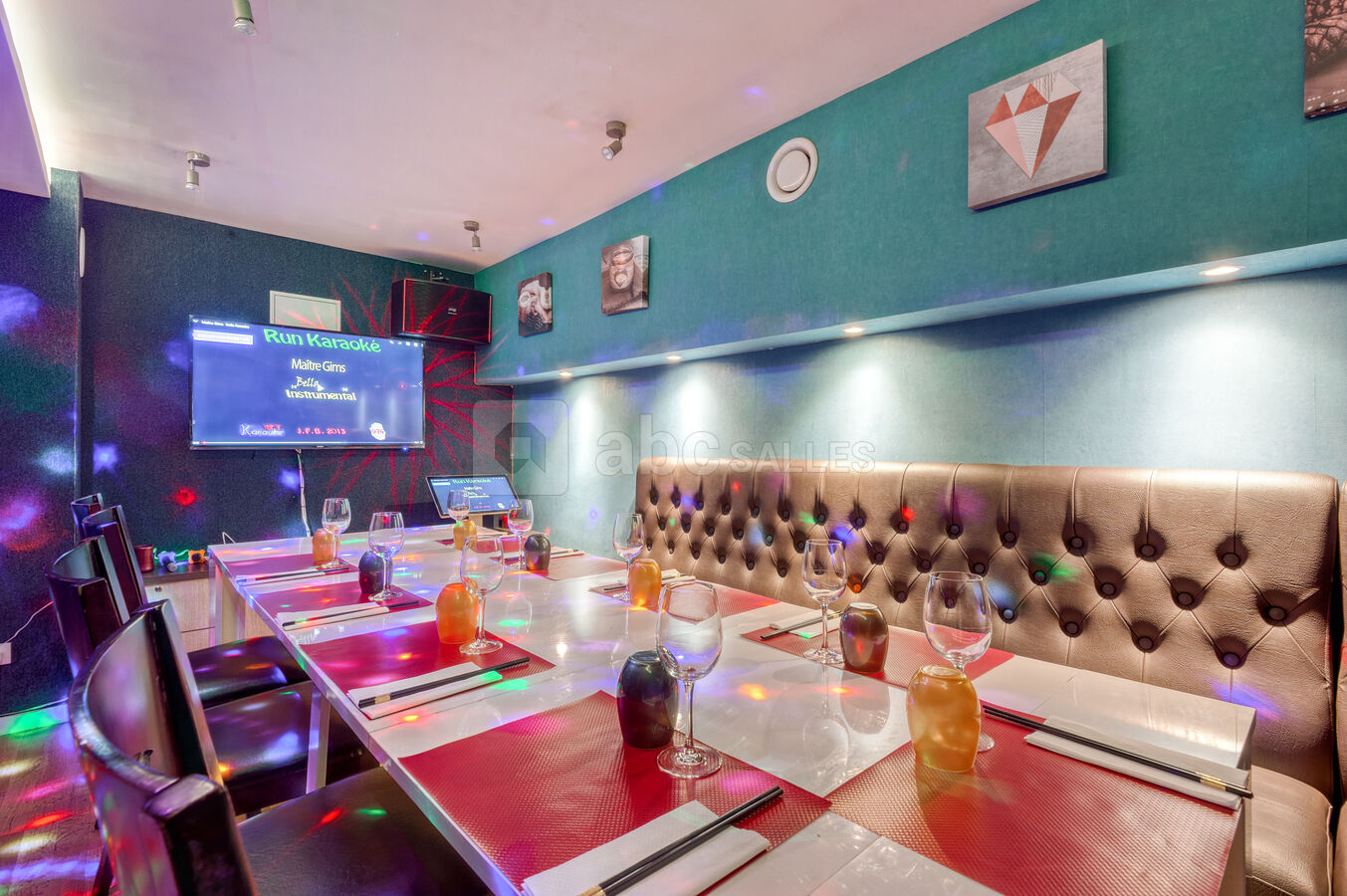 Le restaurant possède 2 salles : (i) une de karaoké et (ii) une salle de réception privée pour grand groupe.