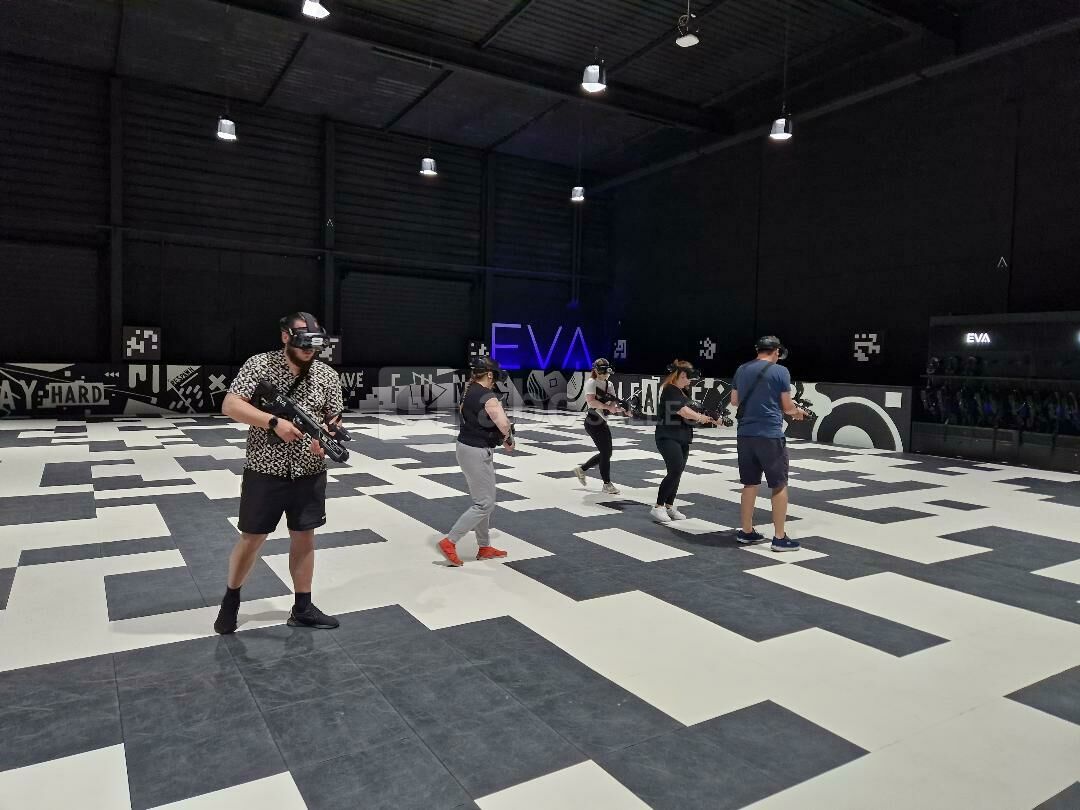 Notre activité est une expérience ultime de réalité virtuelle. Munis d'un casque VR, d'un fusil connecté, vous vous déplacez librement sur une arène de 500 m². Nous avons le plus grand espace de réalité virtuelle Esport d'Europe!
