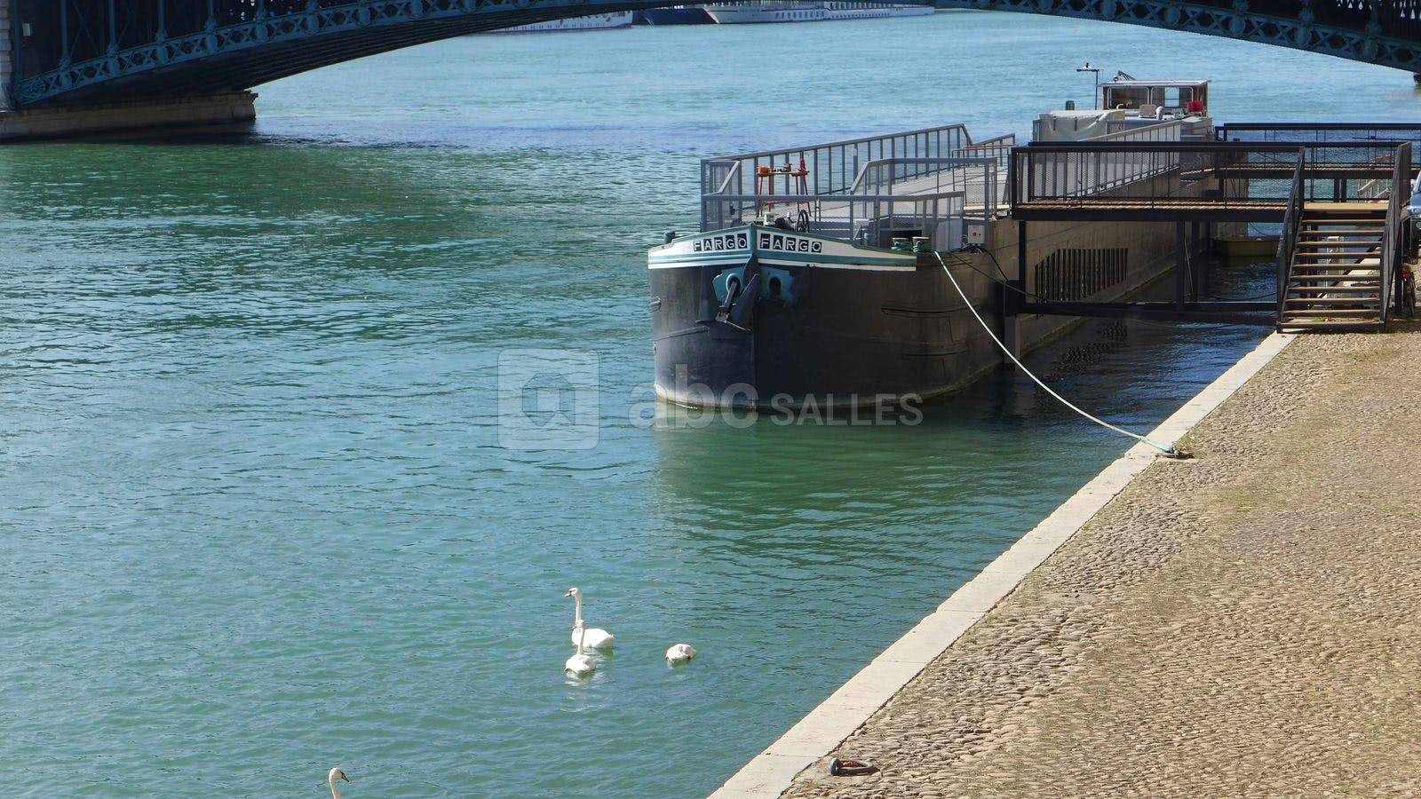 Idéalement située au cœur de Lyon la péniche Fargo s'adaptera à tout type d'événements. Sa terrasse de 100 m² permet d'offrir un point de vue remarquable sur les nouveaux aménagements des berges du Rhône. FARGO pourra le cas échéant est mise à disposition sur d'autres sites sur le fleuve.