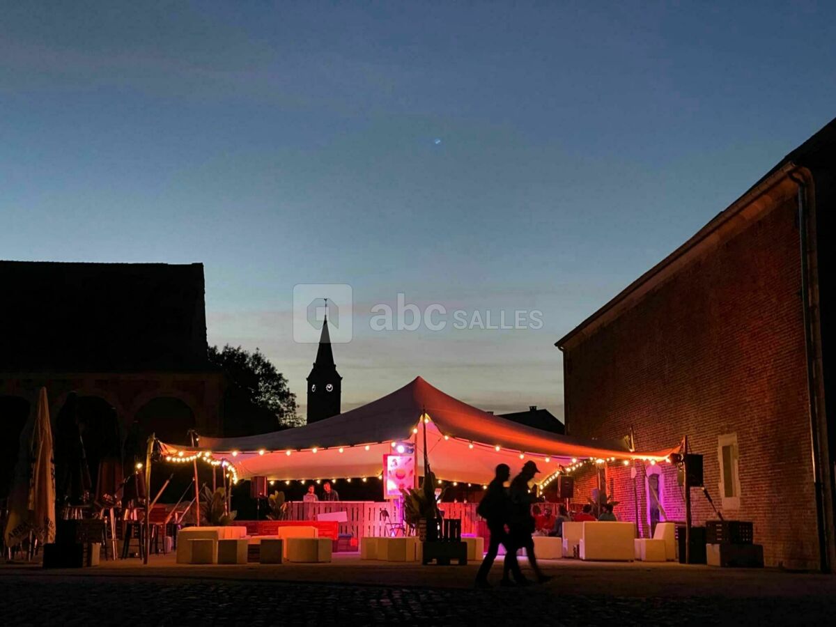 Elle est composée d’un vaste parking, d’une grande cour pouvant accueillir 6000 personnes debout et de 2 magnifiques granges.