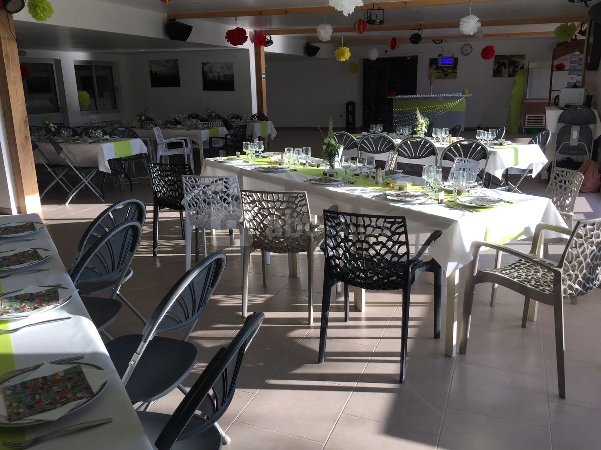 Organisez vos événements particuliers ou d’entreprise, dans un cadre atypique ! Vous aurez à disposition une salle de 200 m² pouvant accueillir de 30 à 150 places assises, sonorisée (6 x 180 watts) et éclairée (18 par led full color) avec vue sur le manège d’évolution des chevaux d’un côté et des près de l’autre, une belle terrasse aménagée de 80 m², un grand barbecue, une cuisine de qualité et toute équipée, avec des menus sur mesure, des animations et spectacles équestres, des baptêmes en attelage, un gîte équestre de 18 lits, des chambres équipées (5 X 6 lits) avec salle de bain, WC handicapés, et accès parking - salle - chambre de plein-pied.