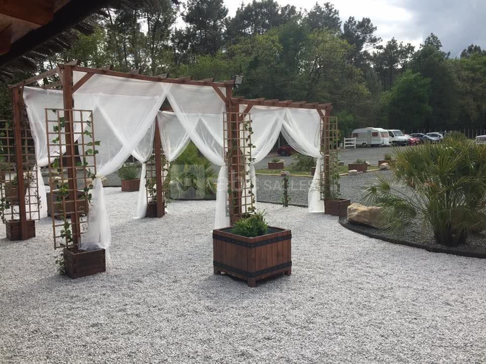 Cette structure est idéale pour vos cocktails, vins d’honneur et events, le tout à l’abri des gouttes et du soleil.