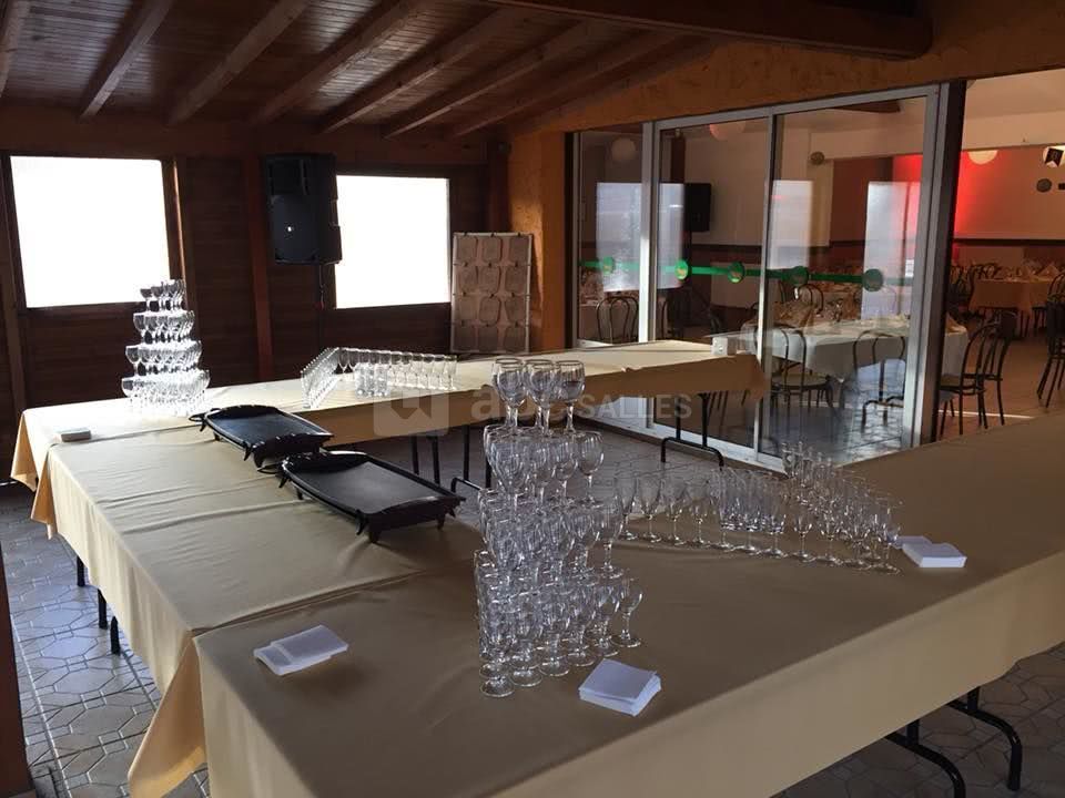 Notre salle est pourvue d’une grande baie vitrée de plus de six mètres jouxtant la paillote de 150 m².