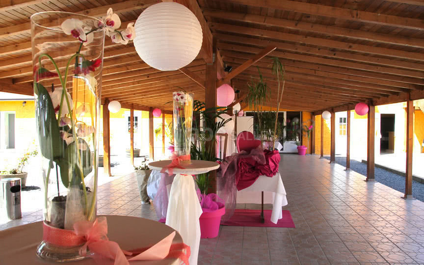 Le Gîte du Grand Cerf met a votre disposition des locaux avec une capacité de 200 personnes, ainsi qu’une grande terrasse couverte de 150 m² et d’une autre terrasse en bois et son mobilier, cet endroit est idéal pour les célébrations.