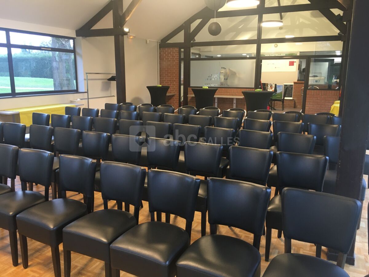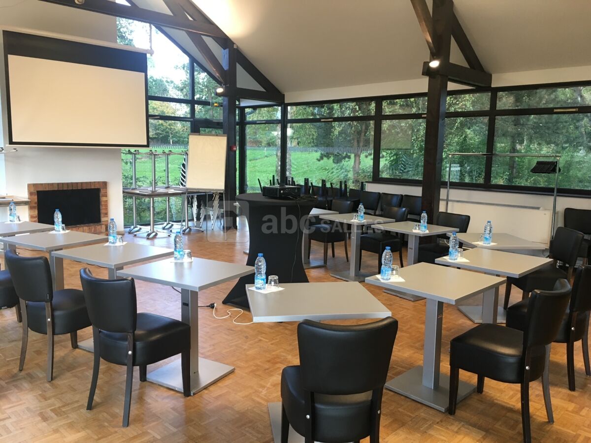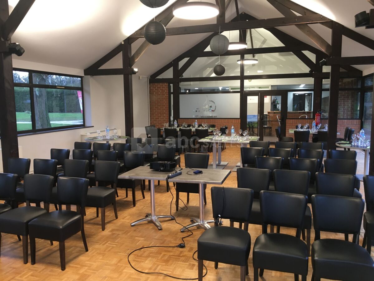 Notre salle de 120 m² donnant sur le green du golf est équipée d’un vidéoprojecteur, d’un écran motorisé, d’un paperboard et d’une sonorisation. Ses baies vitrées et sa terrasse en font un lieu idéal baigné dans une lumière naturelle.