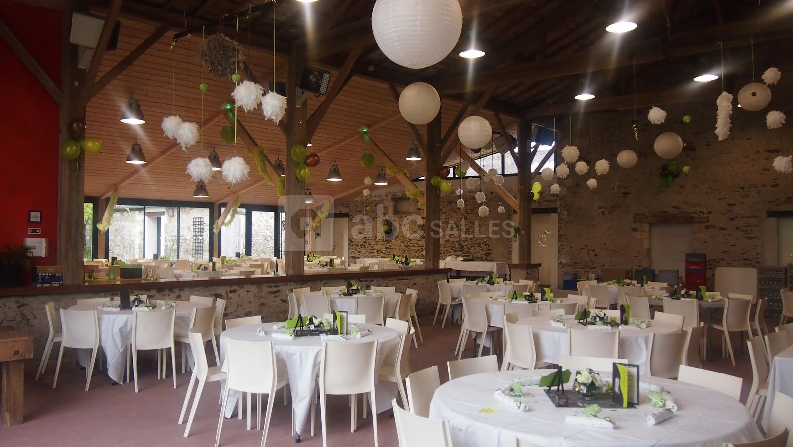Une grande salle de 260 m2 peut accueillir 200 personnes et s'ouvre sur une grande terrasse en bois 100 m2.