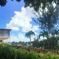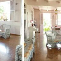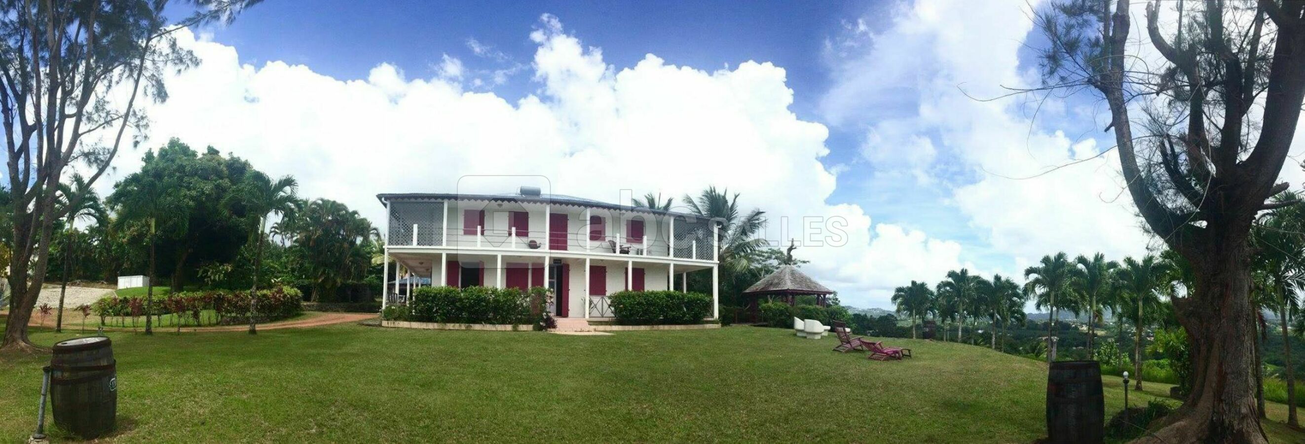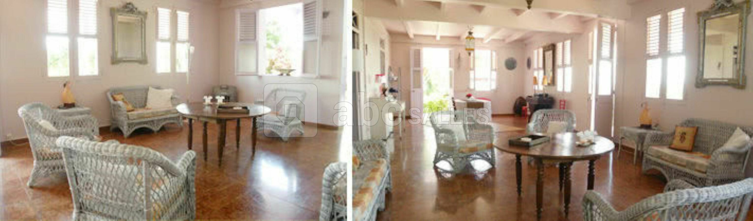La façade de la maison possède une véranda qui court tout autour du bâtiment, assurant la ventilation naturelle. Elle offre une vue à 150° de la baie de Fort de France jusqu’aux Trois Ilets