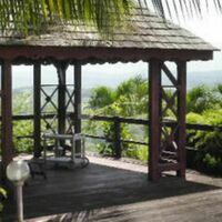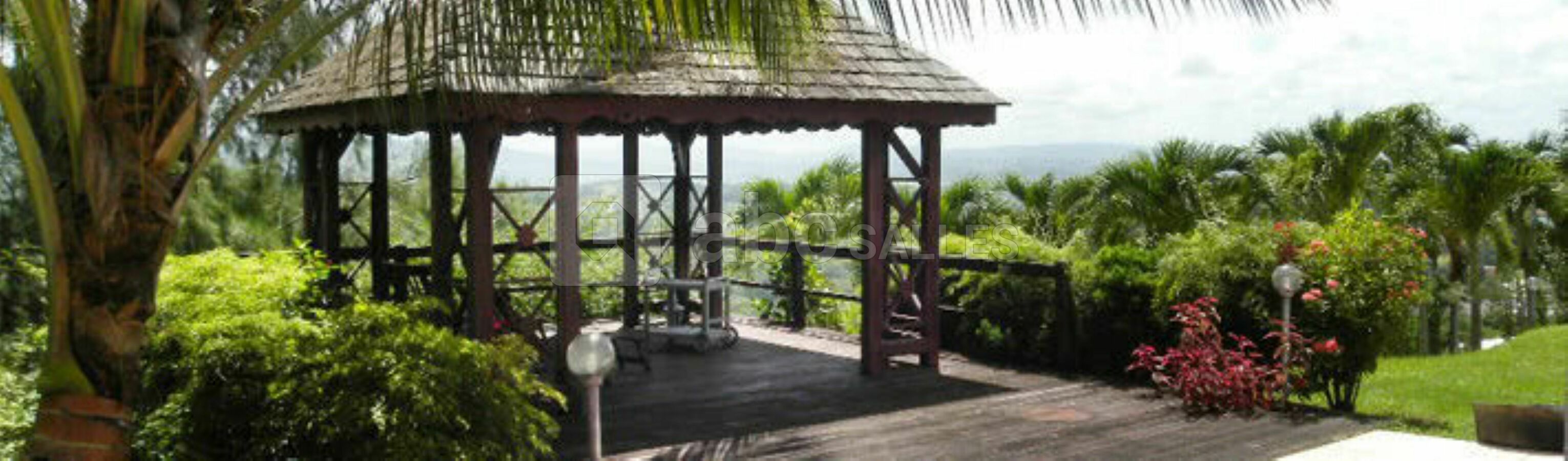 Les arbres centenaires du jardin apporte à cette magnifique habitation créole force et sérénité. Le carbet de facture plus récente a été réalisé par des compagnons.