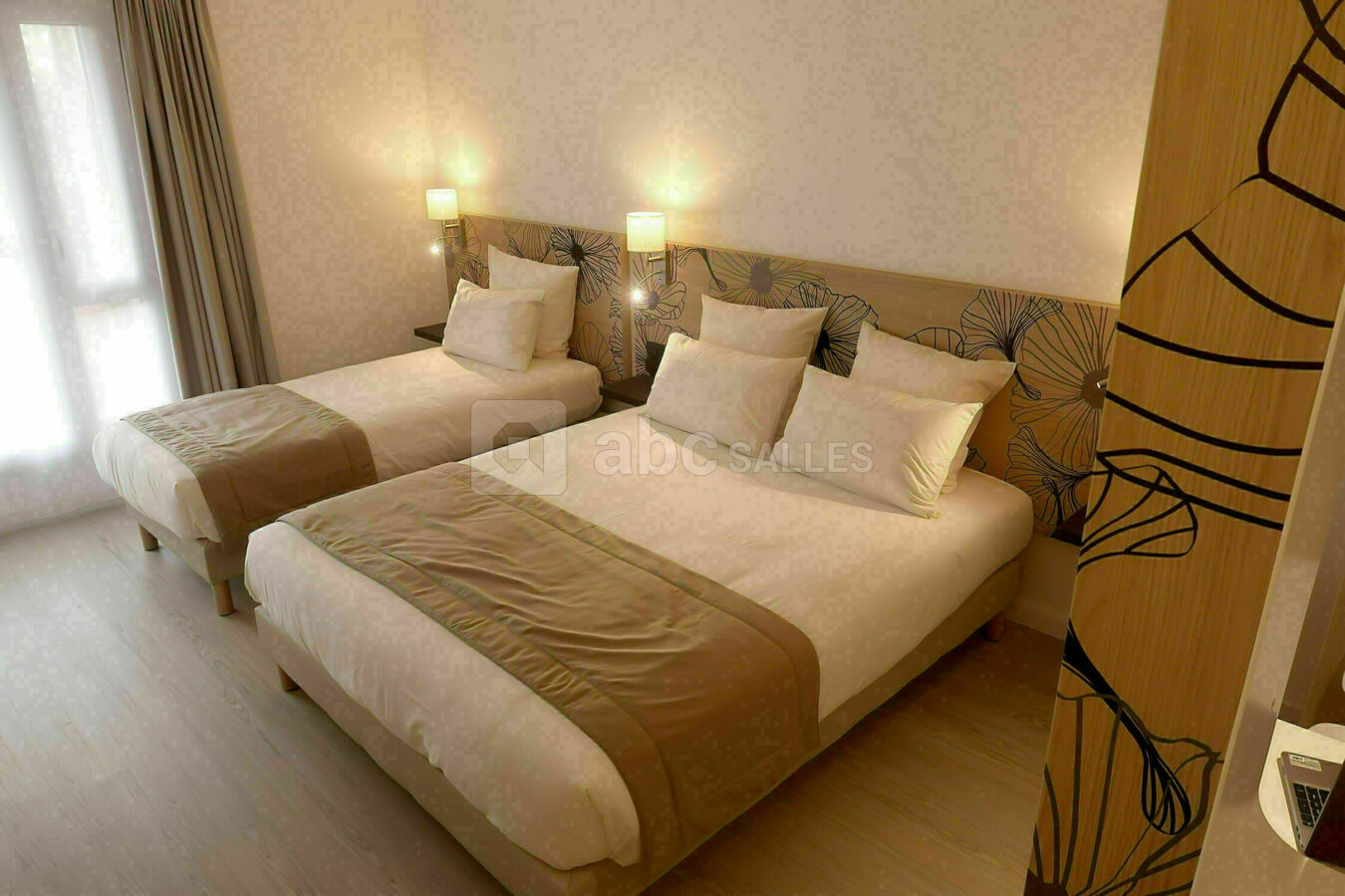 Que ce soit pour des événements privés ou professionnels, nos salles de séminaires sont parfaitement équipées pour répondre à vos besoins. Chacune de nos salles est adjacente à une terrasse, offrant ainsi un espace supplémentaire pour vos pauses et moments de détente. Nos équipements incluent des écrans plats pour la diffusion via HDMI, des paper boards, des rallonges, des chemises à rabat, des stylos et des bouteilles d'eau pour chaque participant.