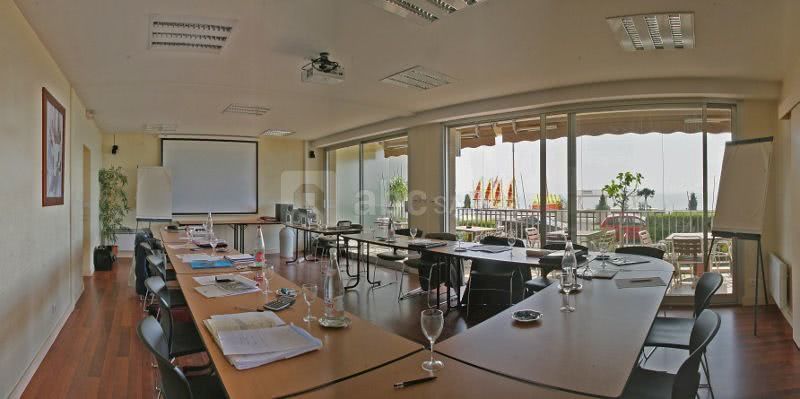 Notre hotel dispose de 2 belles salles de séminaires. Celles-ci sont face mer et sont équipées: -D'un point accès a l'internet haut-débit WIFI (hotspot), vous pourrez acceder simplement (seul ou a plusieurs) a l'internet et a l'intranet de votre société. -Nous venons également d'installer un vidéoprojecteur WIFI et un écran électrique afin de projeter vos présentations efficacement.