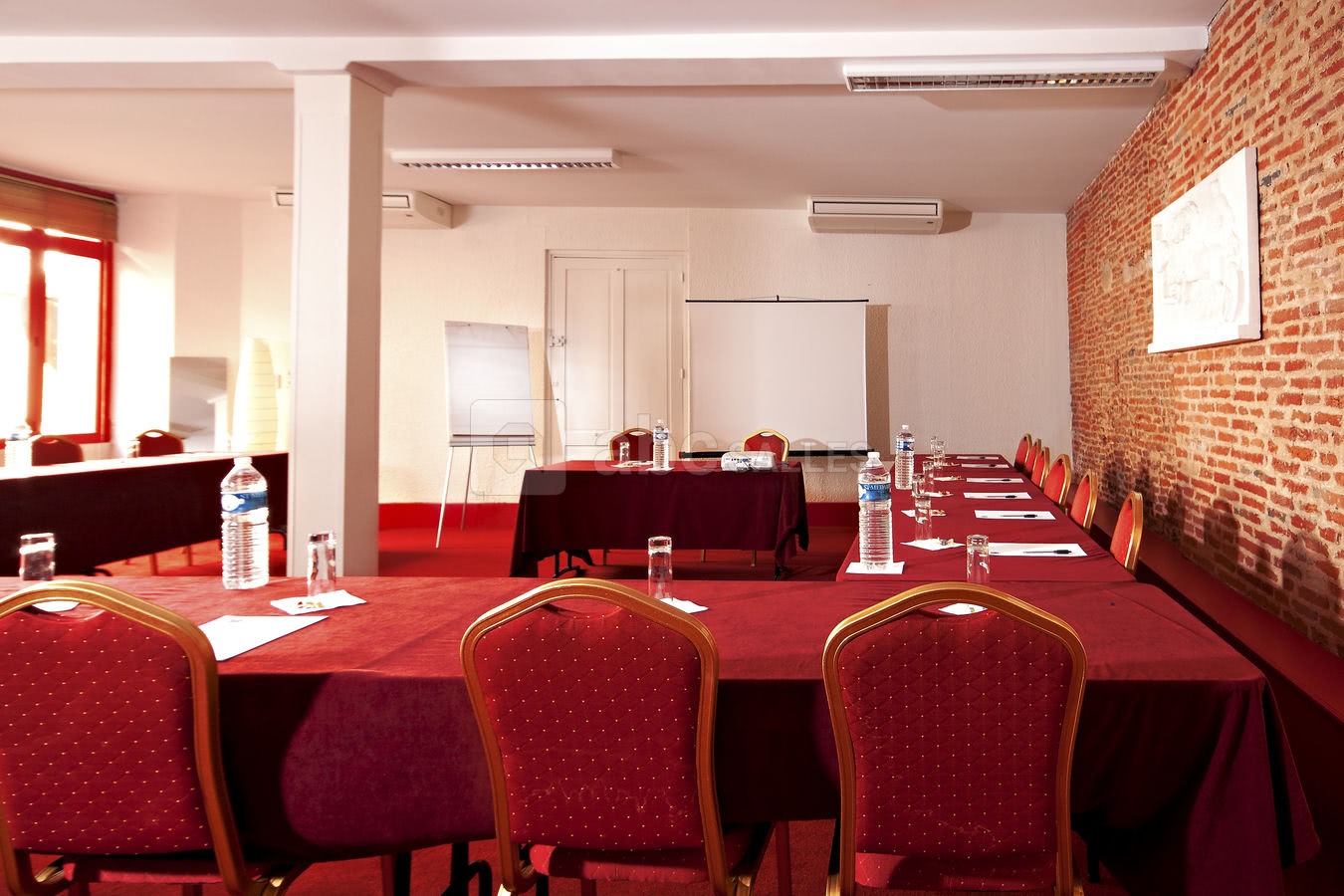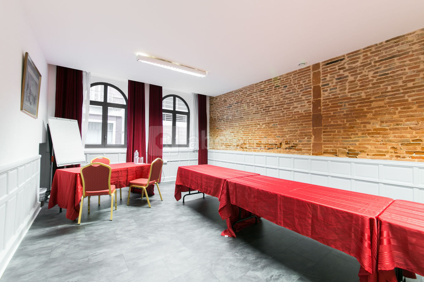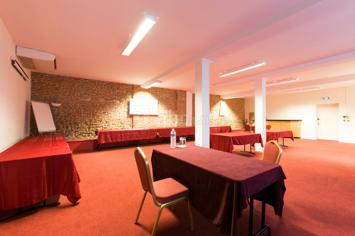 Belles salles de séminaires de plein pied, lumière naturelle et mur de bique dans les 3 salles.
