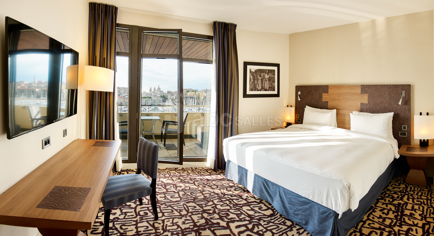 189 chambres, dont 6 suites et 6 junior suites, décorées à la mode Provençale ou Africaine et luxueusement équipées avec les dernières technologies. Certaines offrent une vue imprenable sur l'ensemble du Vieux Port et le Fort St-Jean, d'autres sur la Cita