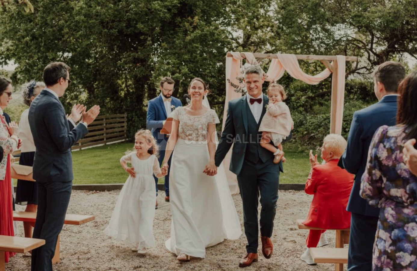 Vous trouverez un espace extérieur permettant d'y organiser votre cérémonie laïque et d'en profiter pour une air de jeux pour le retour de noces par exemple. EN cas de mauvais temps, la petite salle peut être prévue comme plan B.