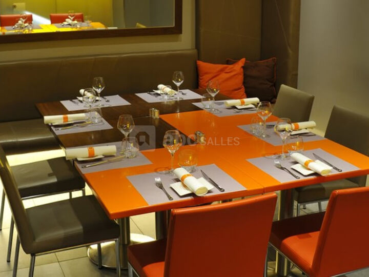 Notre établissement est à la fois un lieu moderne et convivial avec ses lignes épurées où les touches de lumière et de couleur se mêlent au mobilier de merisier, cuir et inox, qui invitent une atmosphère chaleureuse et branchée au centre de Paris. Toute l'équipe vous offre un service décontracté tout en restant très professionnelle. Sans oublier l'installation high-tech d'écrans géants pour les grands moments de télé en live ainsi que les soirées rythmées au son de chanteurs et autres animations. Le restaurant est composé d'une première grande salle ouverte sur la rue en saison, d'une seconde salle en face de notre bar avec 3 tables d'hôtes et d'un petit salon pouvant accueillir jusqu'à 14 personnes avec sa grande table et son vidéo projecteur pour toutes vos réunions.