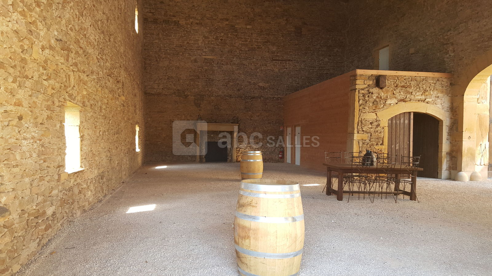 Une salle de réception unique, d'une capacité d'accueil de 420 m² (climatisée l'été et chauffée au sol l'hiver) elle peut contenir jusqu'à 220 personnes assises et garantit une belle piste de danse. Ses chaises en fer forgé, ses tables rondes, son luminaire offrent un mobilier stylé. Sa cuisine est équipée ; une pièce enfants accueille huit couchages.