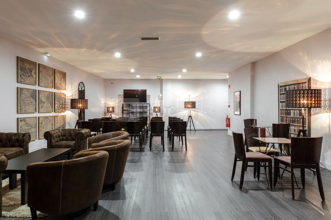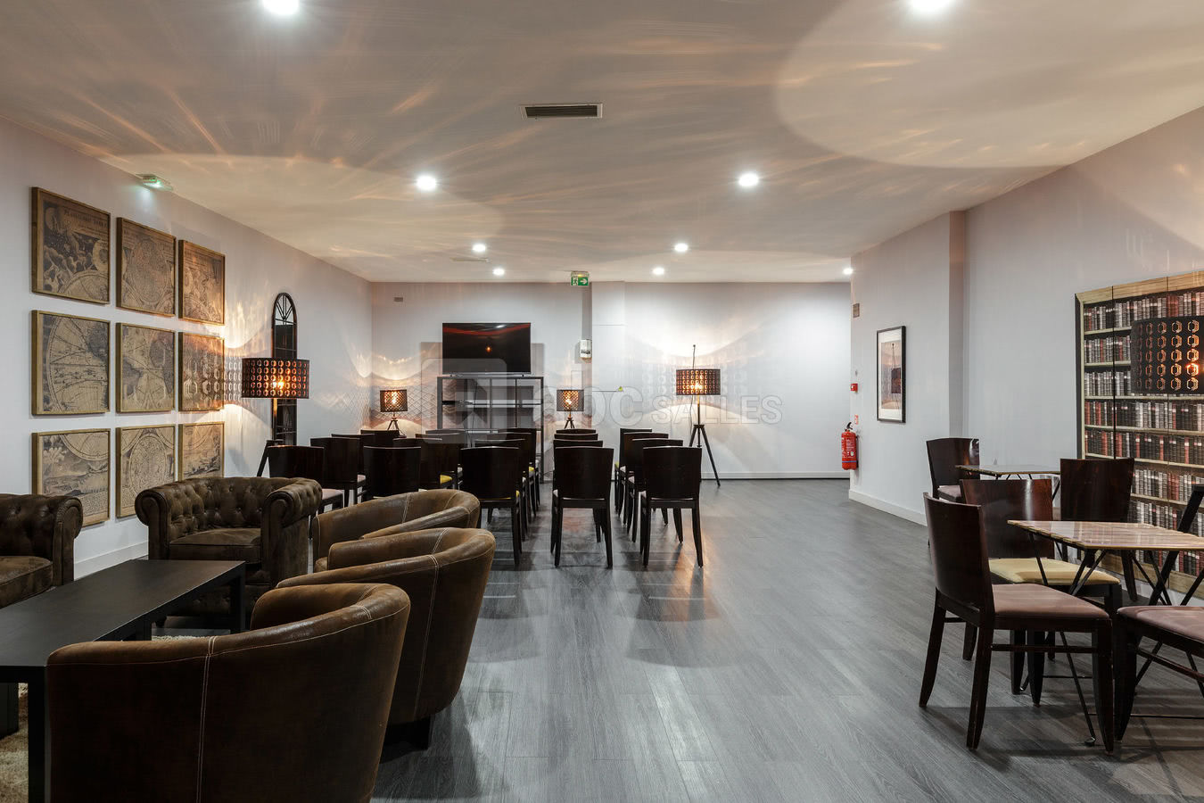 La Bibliothèque présente une surface de plus de 300 m². Sa décoration est travaillée dans un style chaleureux et confortable avec des lumières chaudes et des canapés Chesterfield.