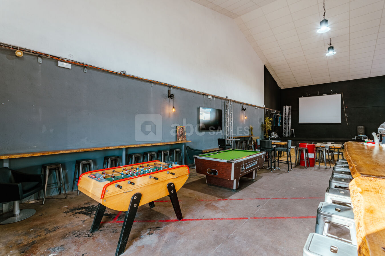 Une salle équipée de jeux et d'un grand écran