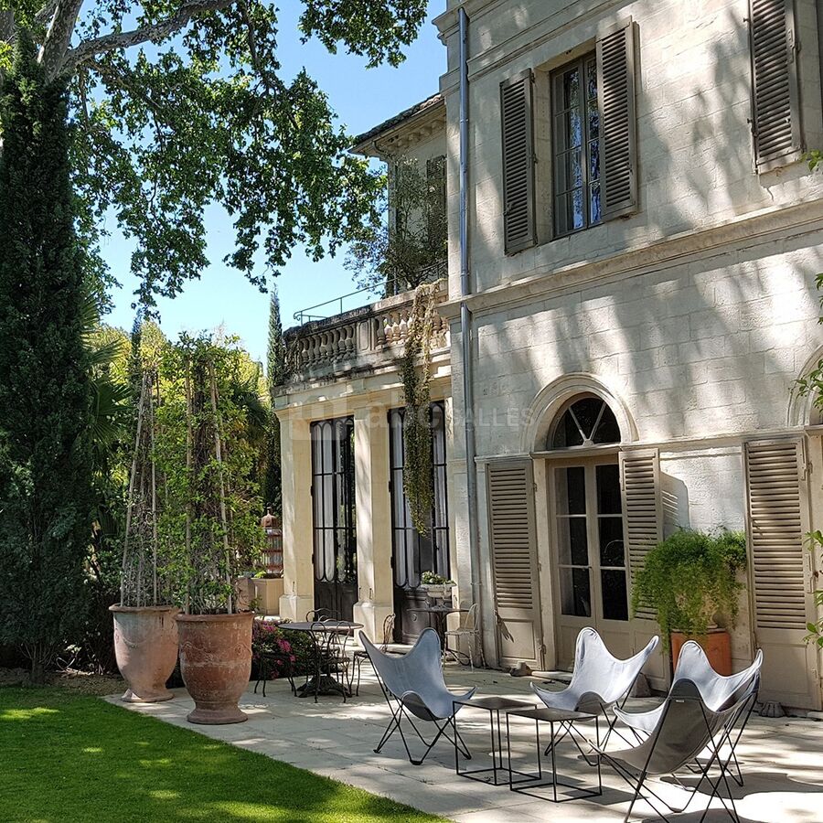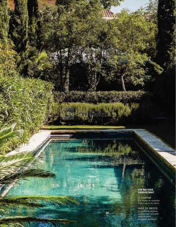 Localisé à seulement deux pas du Palais des Papes, ce luxueux hôtel particulier est un véritable joyau dans un écrin de verdure. Et pour cause : à l’abri des regards indiscrets car lové au cœur d’une végétation luxuriante faite - entre autres - de bambous, il s’élève dans ce qui est aujourd’hui le plus grand jardin privé de cette Cité d’histoire. Une oasis en pleine ville qui comprend un bassin de nage et peut accueillir jusqu’à 150 convives pour un vin d’honneur ou un cocktail. Elle peut même servir de décor de prestige à l’occasion d’un shooting photo !