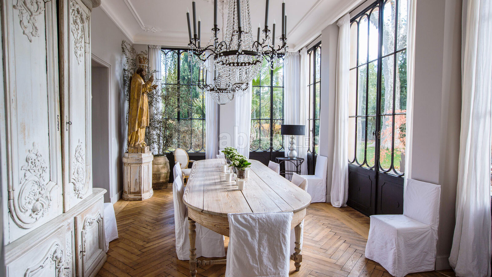 Comme son espace extérieur, ses espaces intérieurs bénéficient d’une esthétique léchée. Celle qui fut la maison du Cardinal Amédée de Saluces, ambassadeur des Papes d'Avignon, a en effet été décorée dans le plus pur esprit du style Shabby Chic. Mobilier vintage en bois clair et éléments de décorations plus sophistiqués captent ainsi la lumière des différents salons - pouvant chacun accueillir plusieurs dizaines de personnes pour des réceptions - et participent à l’atmosphère romantique des lieux.