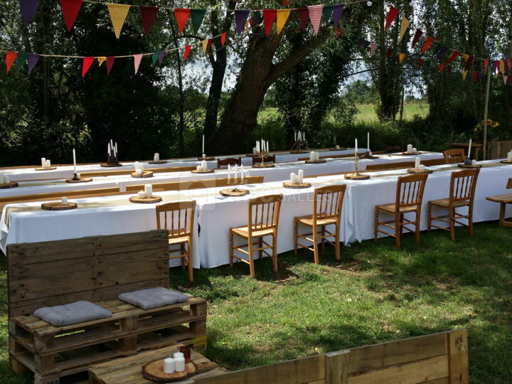 La salle de la Ferme du Boué peut recevoir jusqu'à 100 personnes assises pour votre réception de mariage.