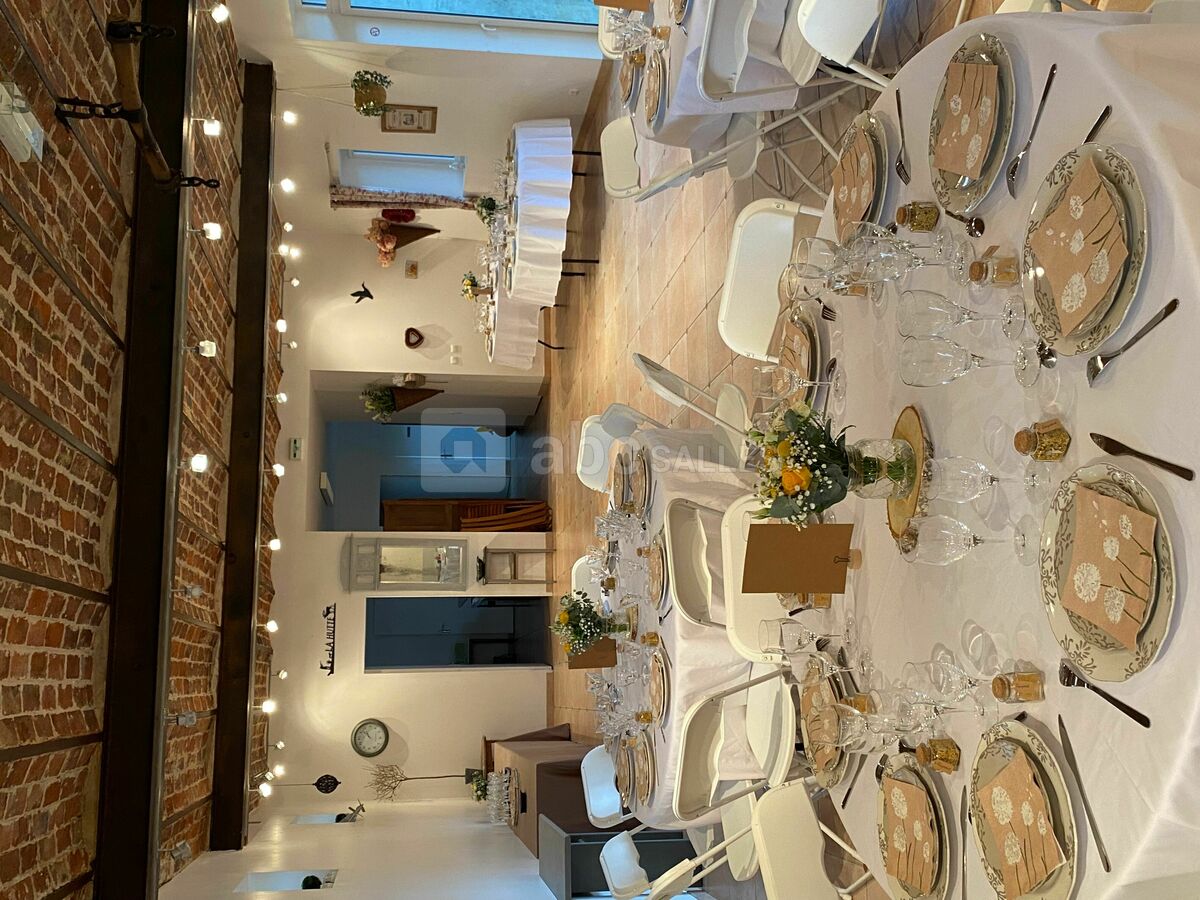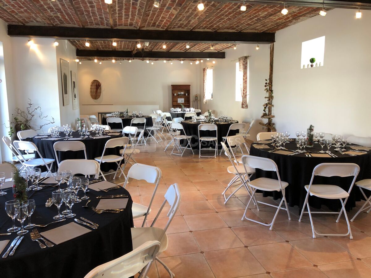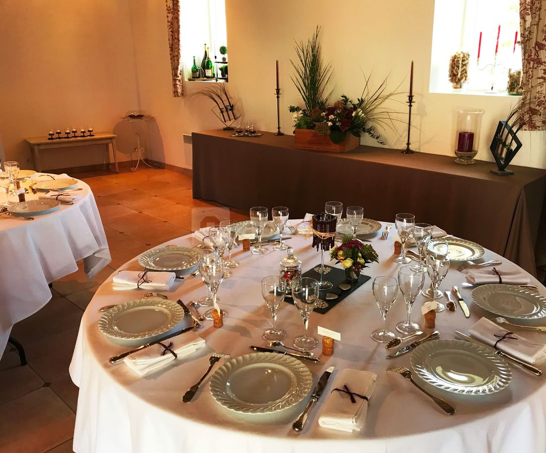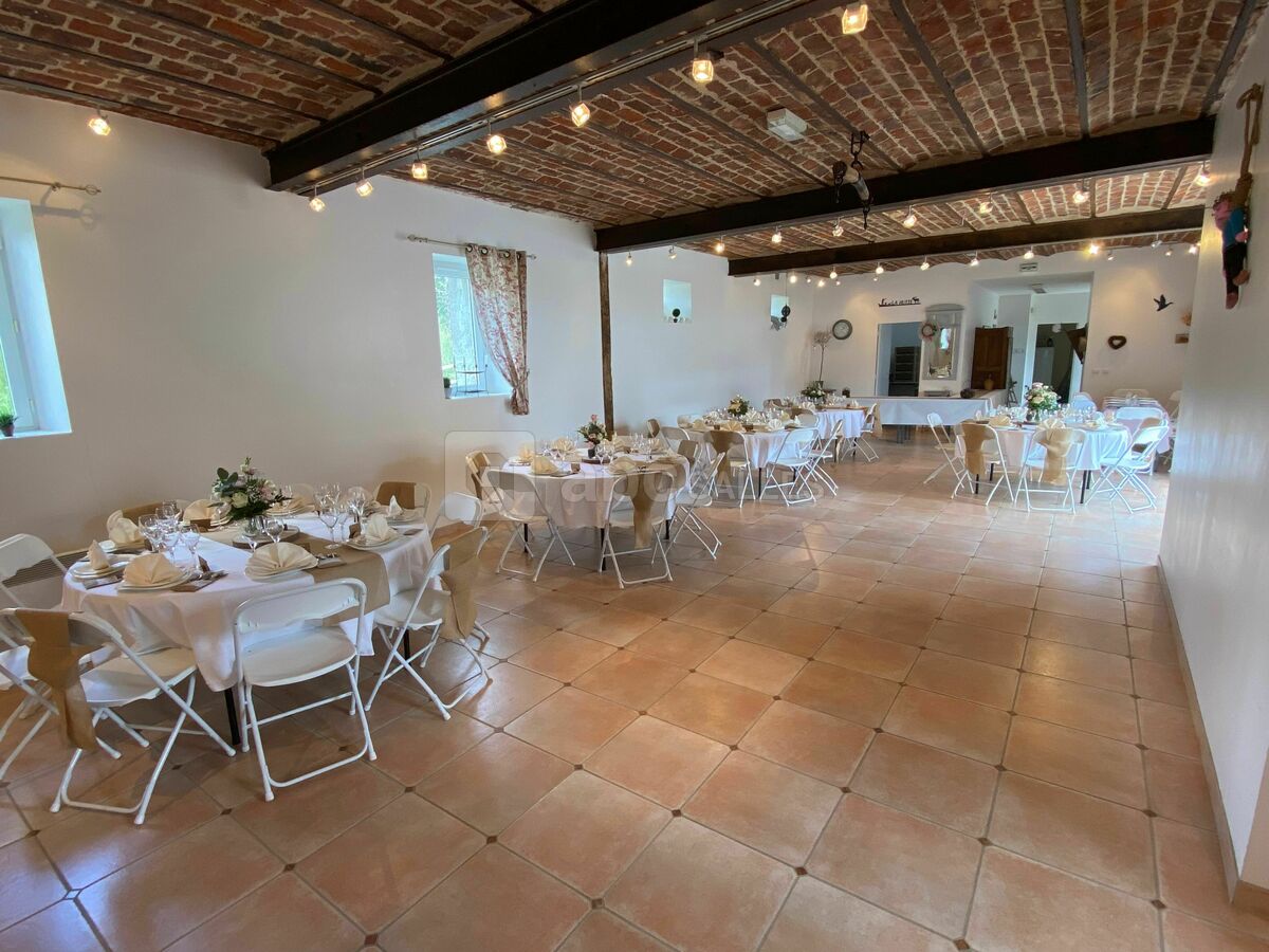 - 6 tables rondes ( 50 personnes environ) libèrent un espace d'environ 23 m² pour un cocktail et/ou piste de danse