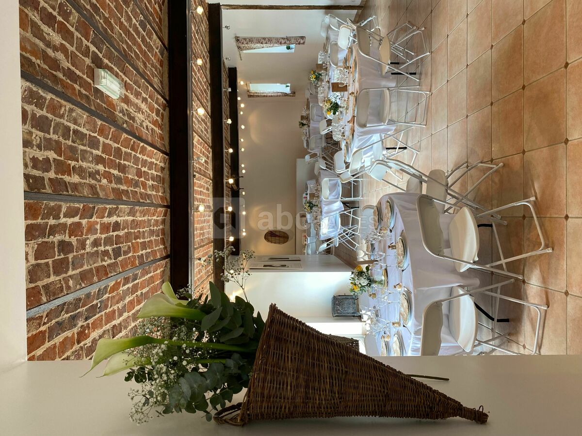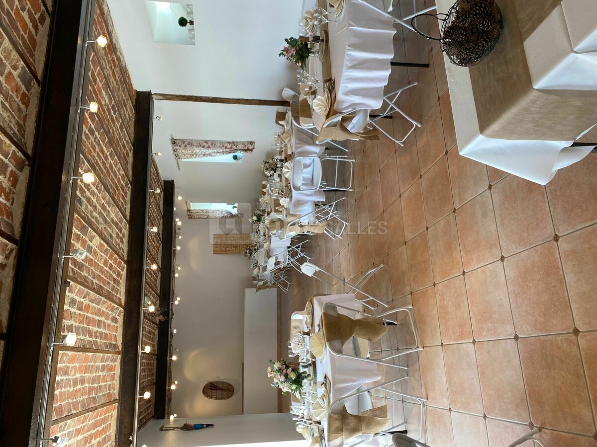 Établie dans le corps de ferme, vous serez séduits par la façade en pierre, les poutres et briques apparentes de notre salle de 90 m². L’espace extérieur de 250 m² attenant à la salle pourra vous permettre d’aménager un espace cocktail, café, détente, jeux d’entreprise…