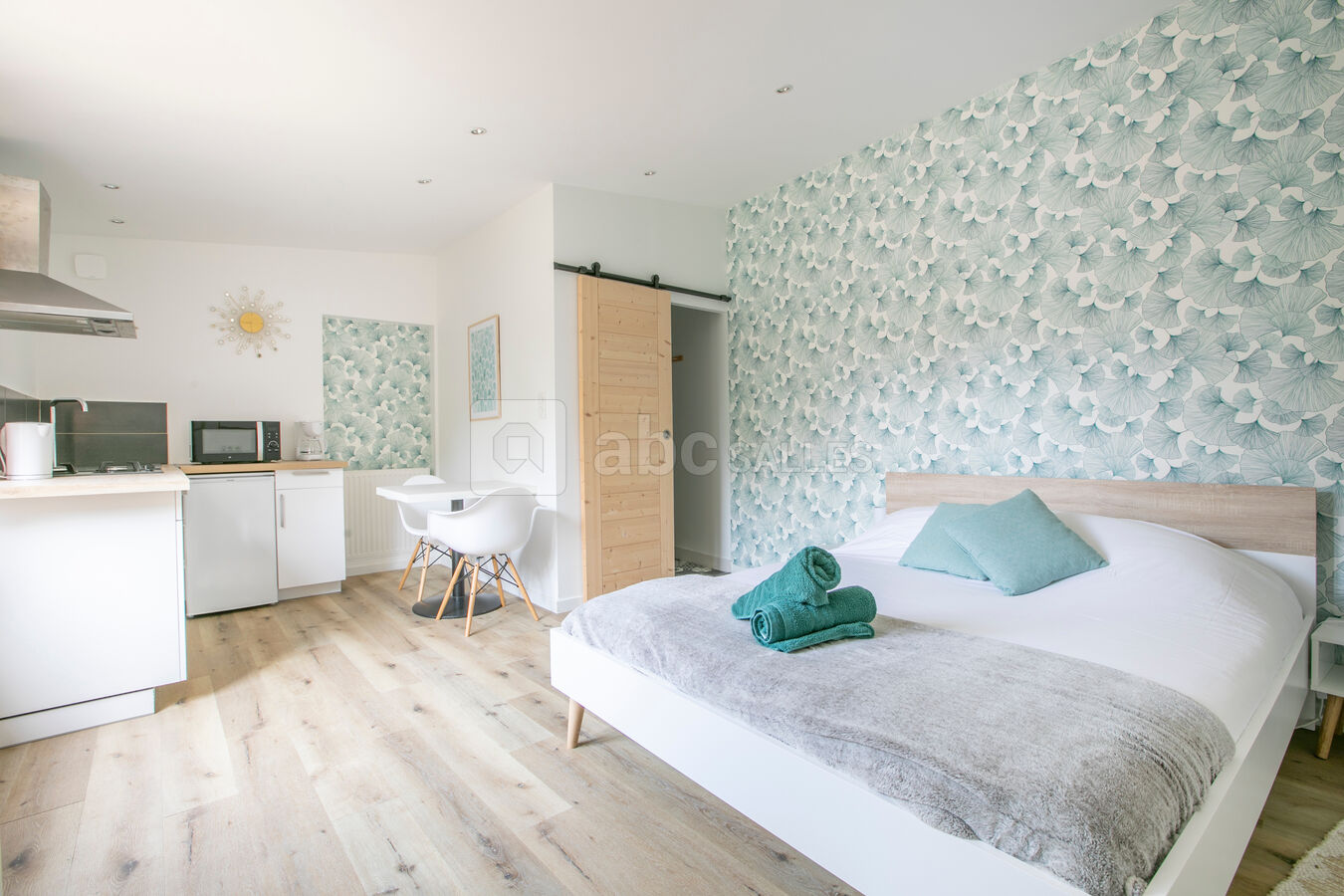 A l’abri des regards, derrière un grand portail vert amande, vous serez accueillis dans une villa de charme et atypique située sur la commune de Saint Vivien.