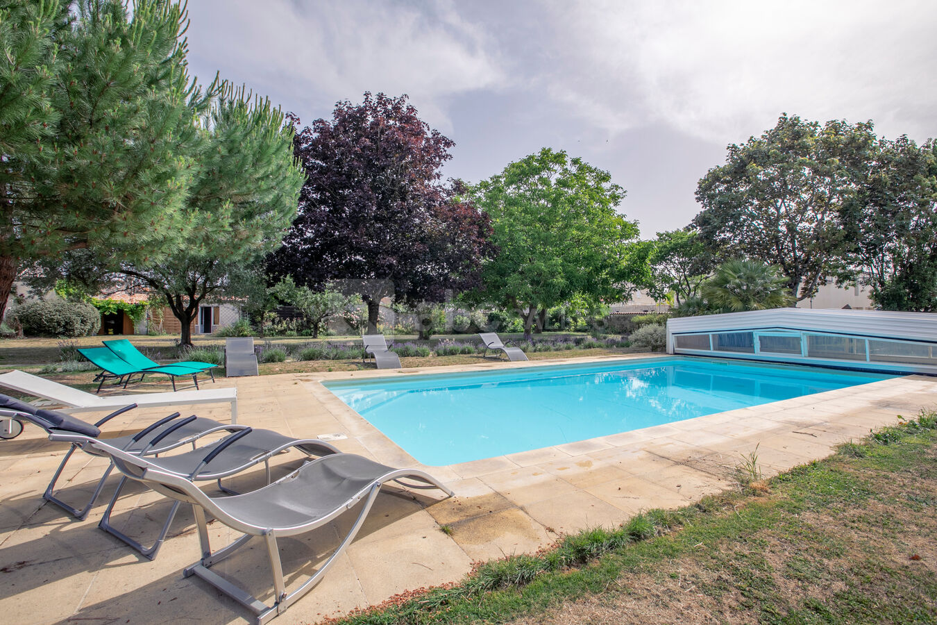 La propriété, implantée dans un parc d’environ 3000m², se compose d’une grande maison principale et de 4 gîtes indépendants permettant une grande capacité de couchage.
