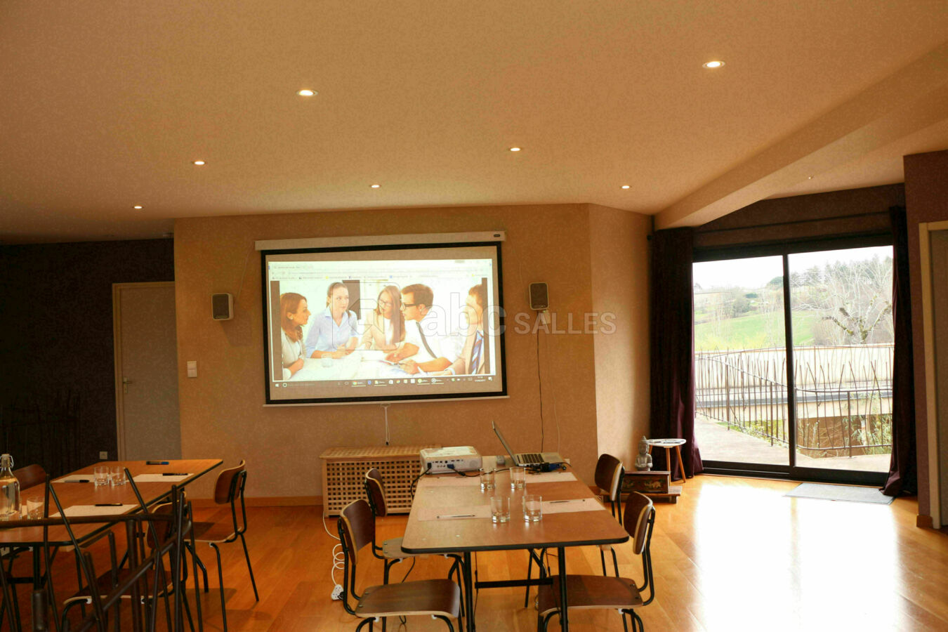 Il y a également possibilité de faire les réunions dans le salon "comme à la maison" avec le vidéo projecteur et un écran mobile.